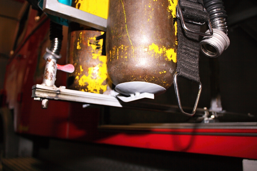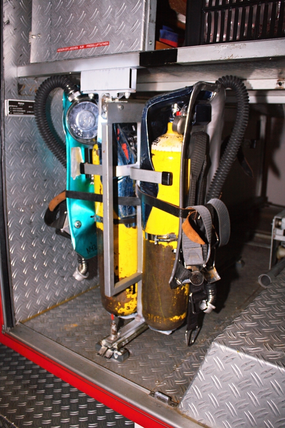Již v den předávání dýchacích přístrojů jsme zkoušeli, zda jdou umístit do stávajících držáků v Mercedesu. Při tom jsme zjistili že jsou Saturny moc vysoké.