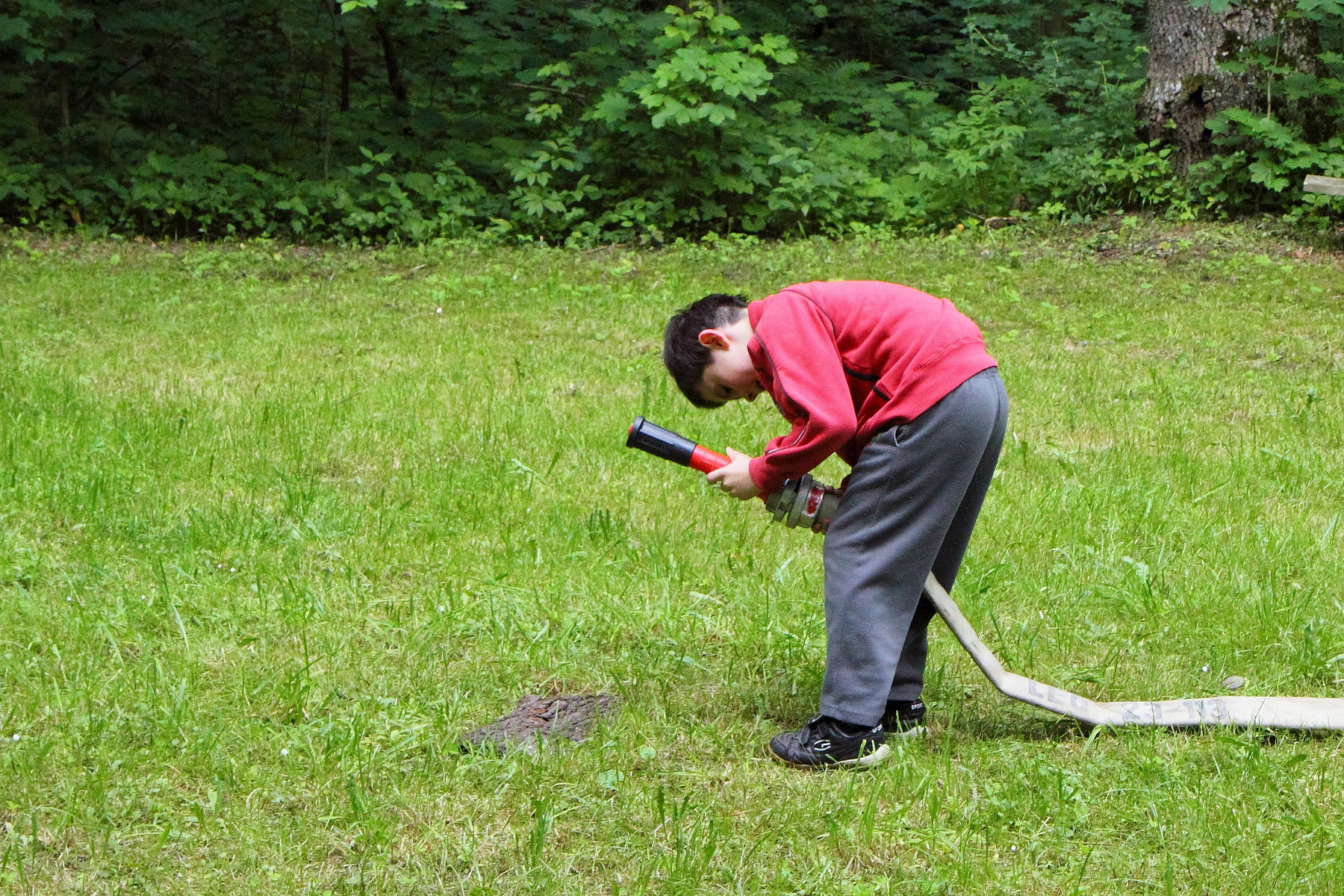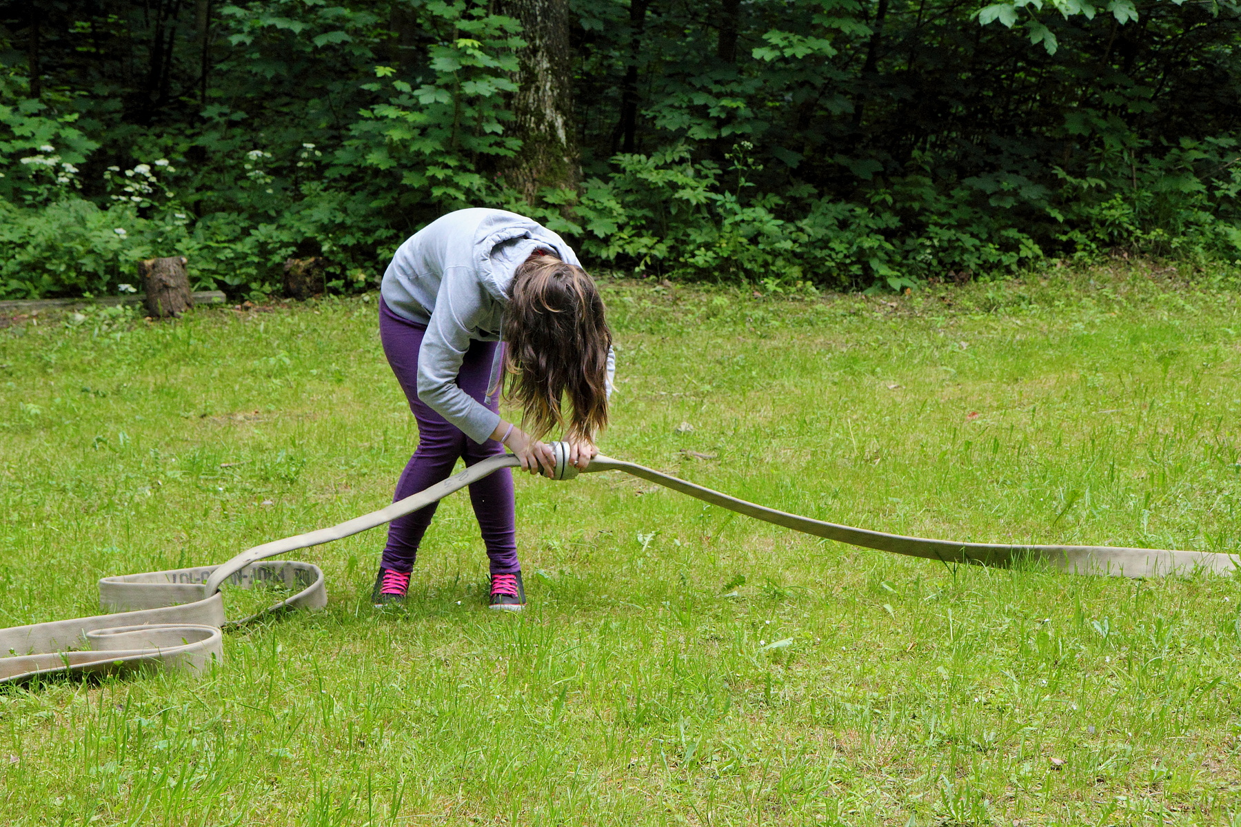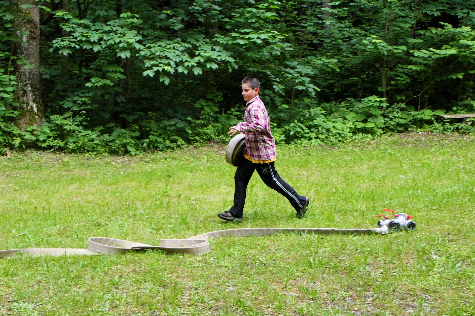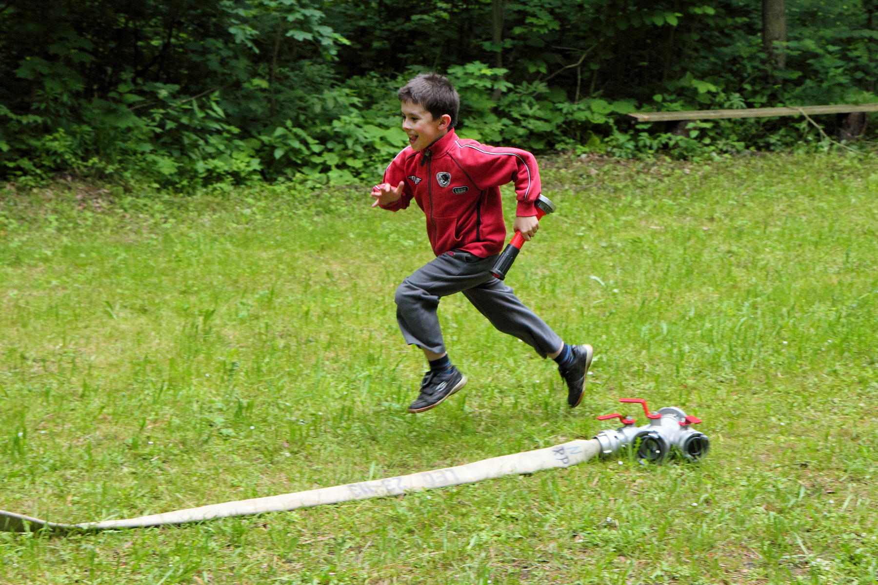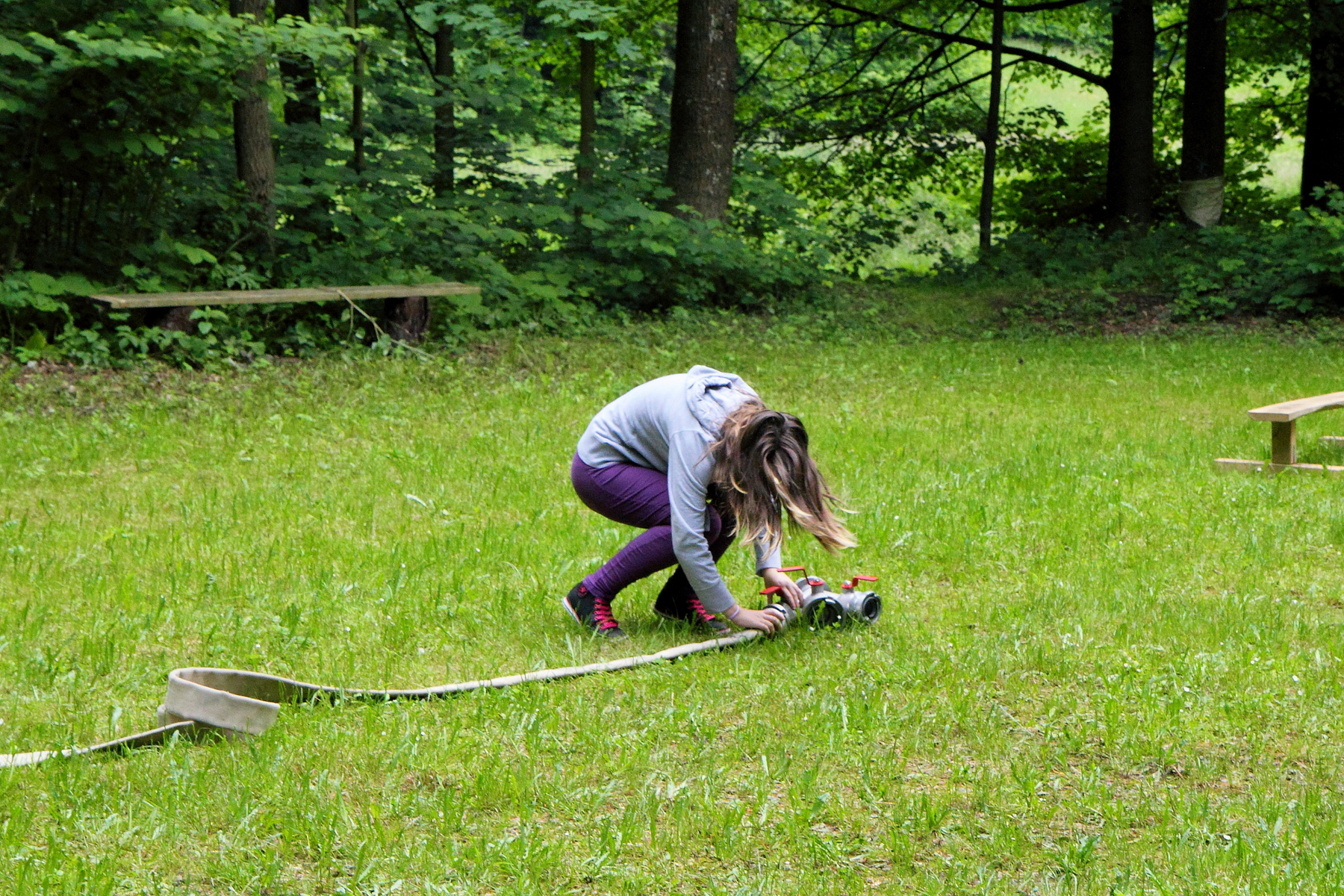 Během této disciplíny soutěžící proběhne první soutěžící celou trať, kdy překoná kladinu a nízkou bariéru v cíli. Druhý soutěžící v pořadí se vyzbrojí hadicí C, překoná kladinu a u rozdělovače hadici rozvine. Třetí účastník rozvine další hadici, čtvrtý účastník propojí první hadici s rozdělovačem a spojení obě hadice. Poslední soutěžící vybíhá s proudnicí, kterou zapojí na konec hadicového vedení.