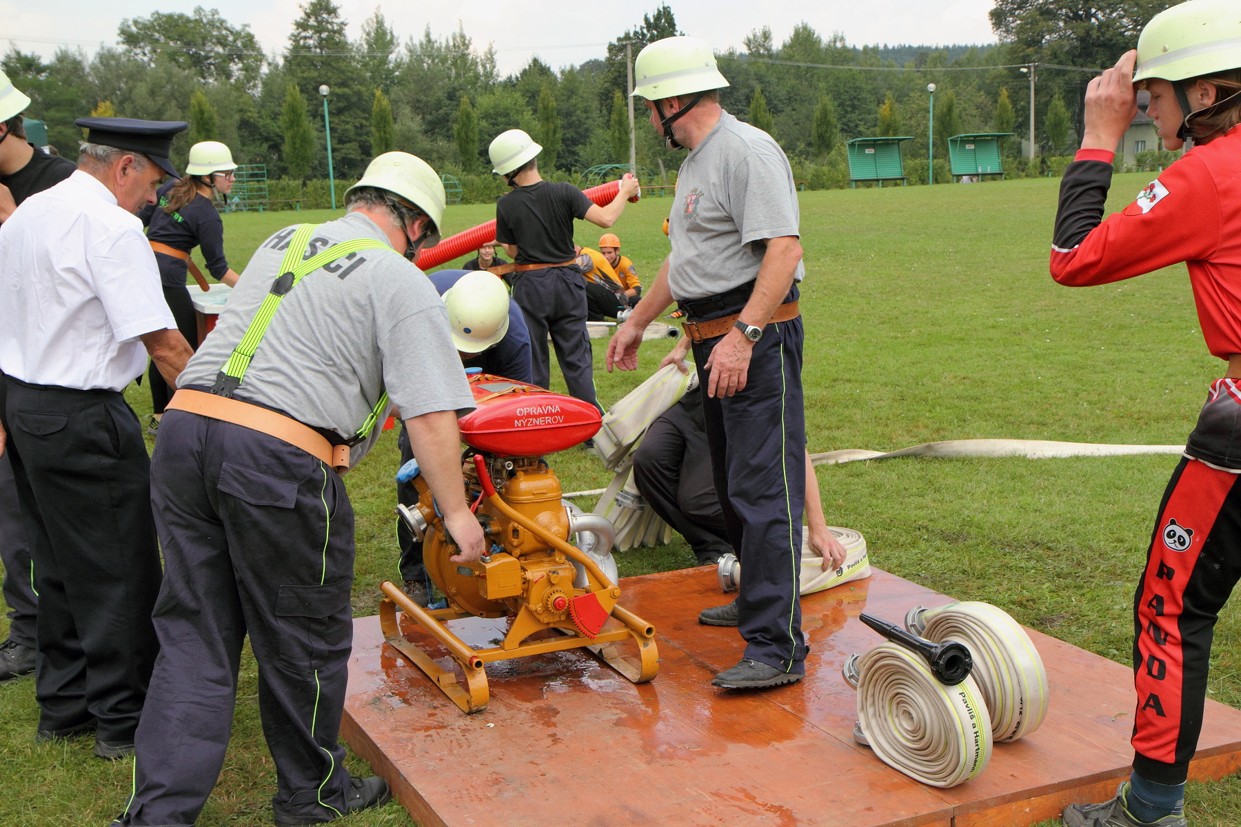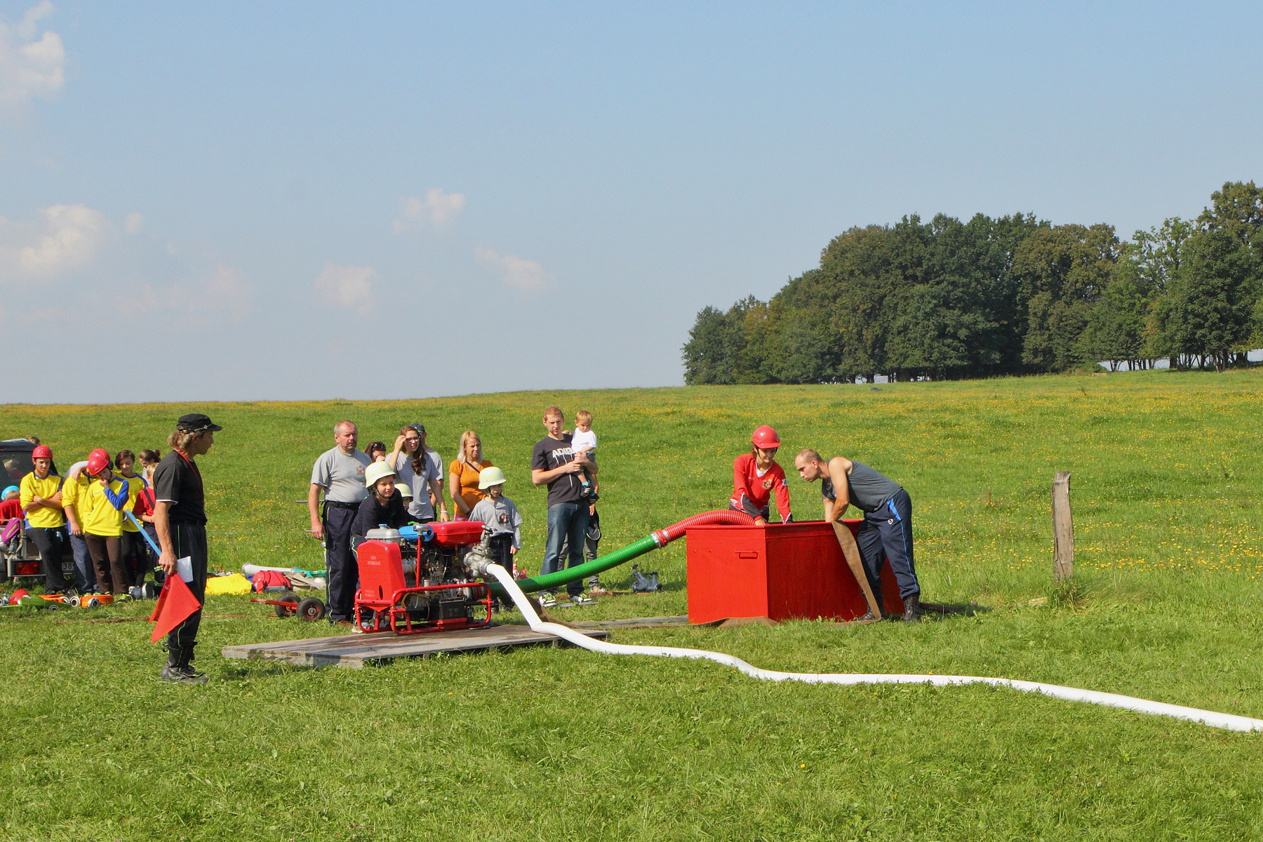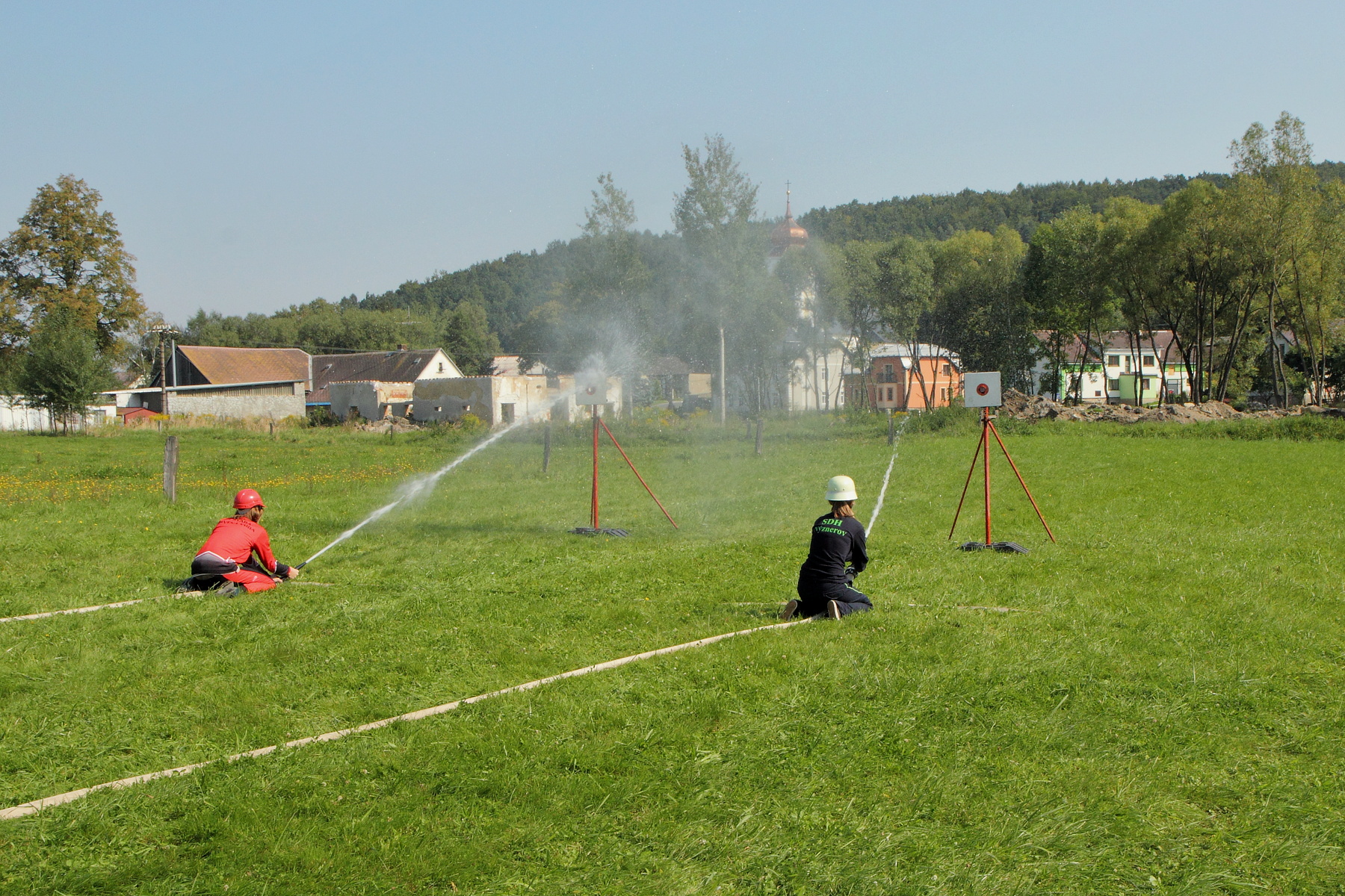 Startovali jsme až mezi posledními, takže jsme měli čas sledovat dovednosti ostatních družstev. Požární útok probíhal na tři terče a všichni, co běželi dopředu, překonávali vyznačený vodní příkop. Dnes jsme poprvé na soutěži provedli naběračku. Také zde jsme měli půjčeného jednoho hasiče ze Staré Červené Vody. Útok jsme zdárně dokončili, ale čas stačil jen na poslední místo.