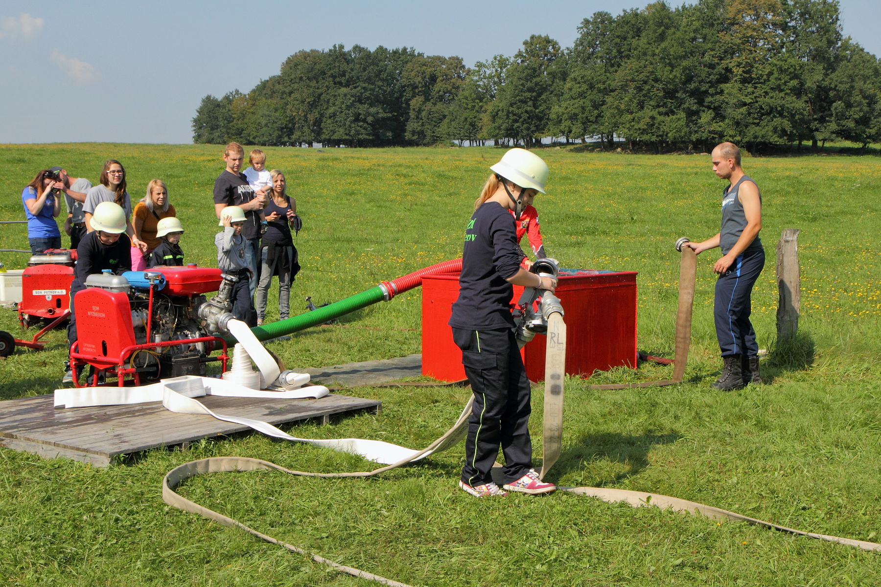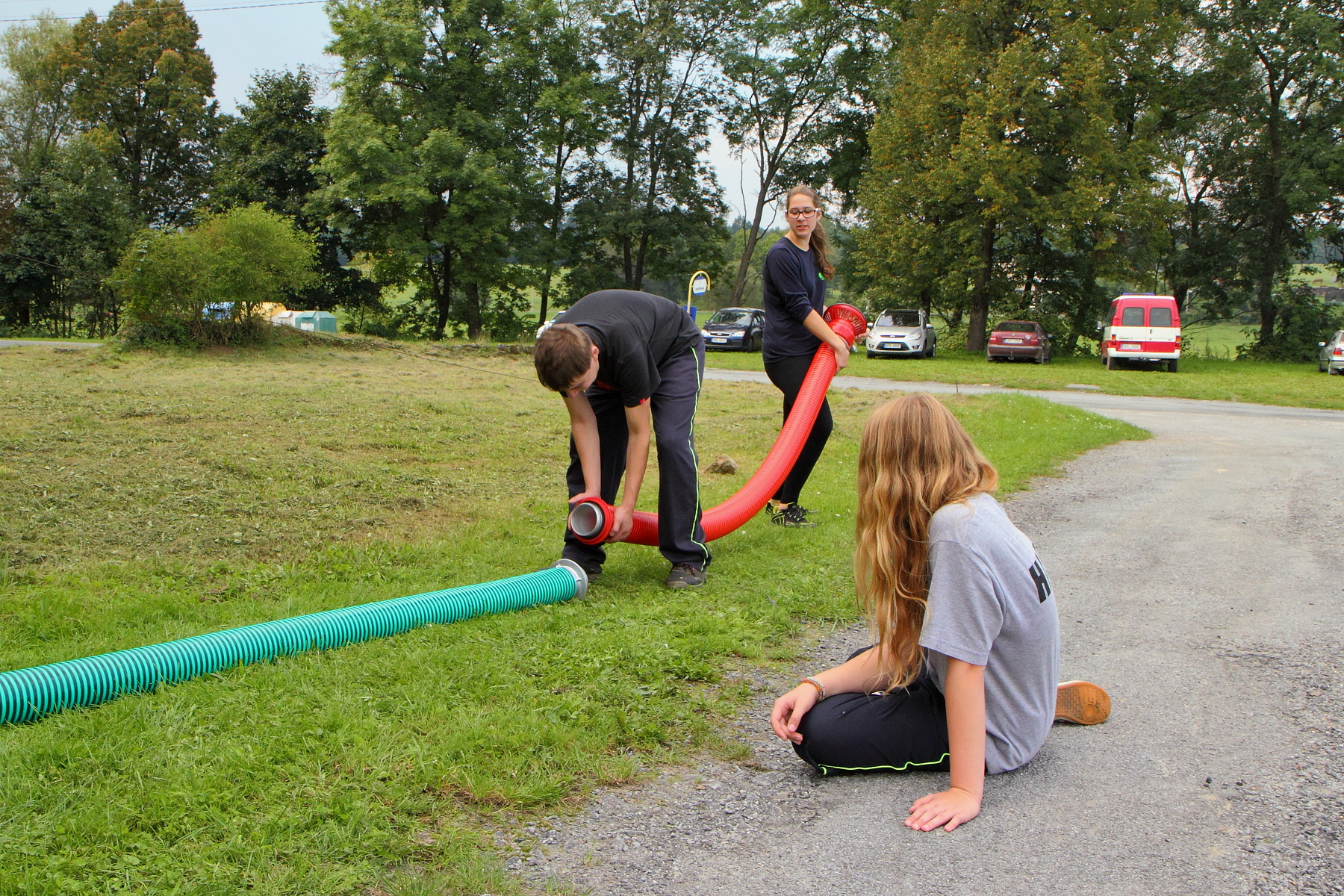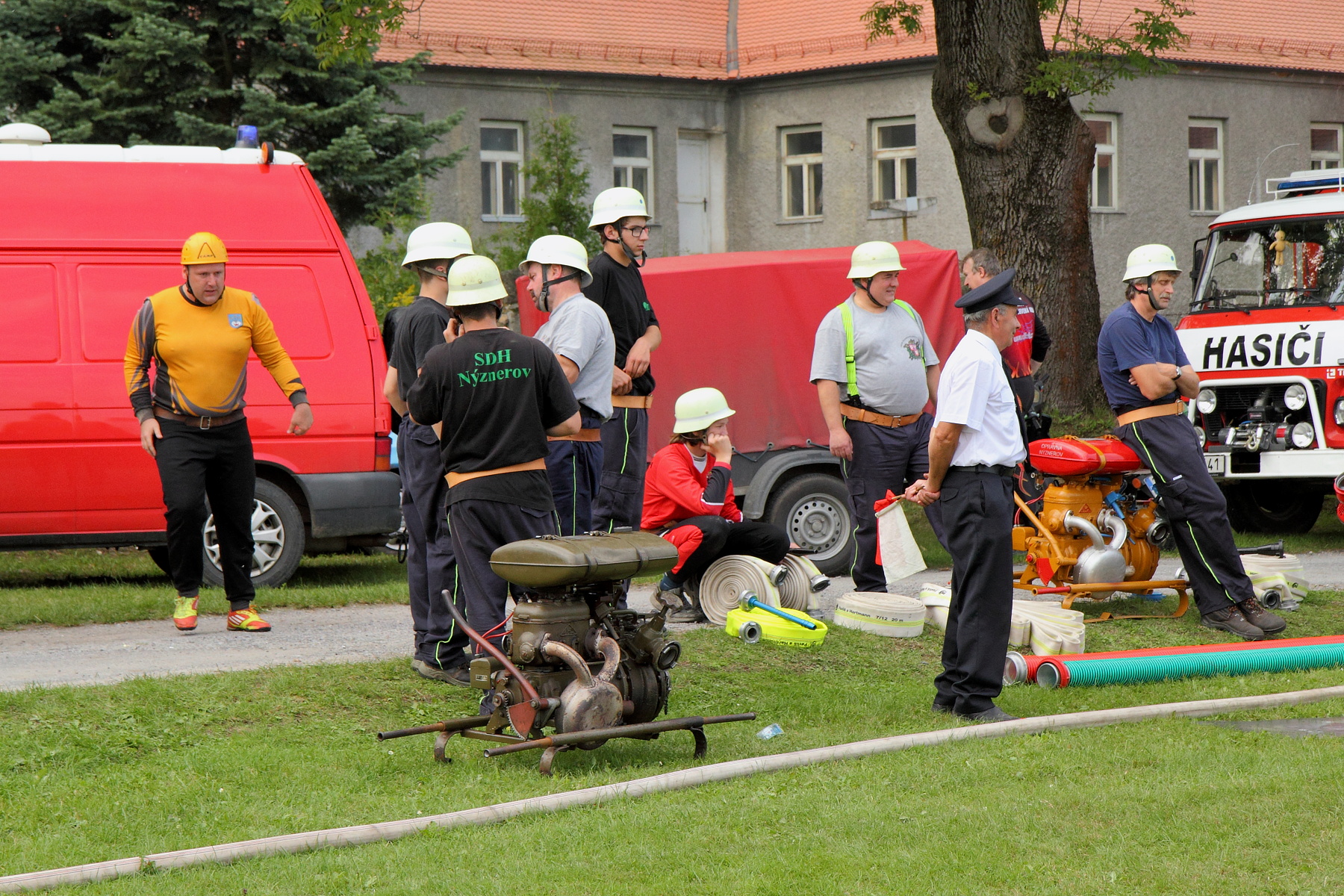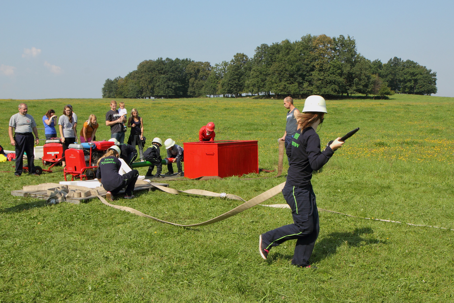 Startovali jsme až mezi posledními, takže jsme měli čas sledovat dovednosti ostatních družstev. Požární útok probíhal na tři terče a všichni, co běželi dopředu, překonávali vyznačený vodní příkop. Dnes jsme poprvé na soutěži provedli naběračku. Také zde jsme měli půjčeného jednoho hasiče ze Staré Červené Vody. Útok jsme zdárně dokončili, ale čas stačil jen na poslední místo.