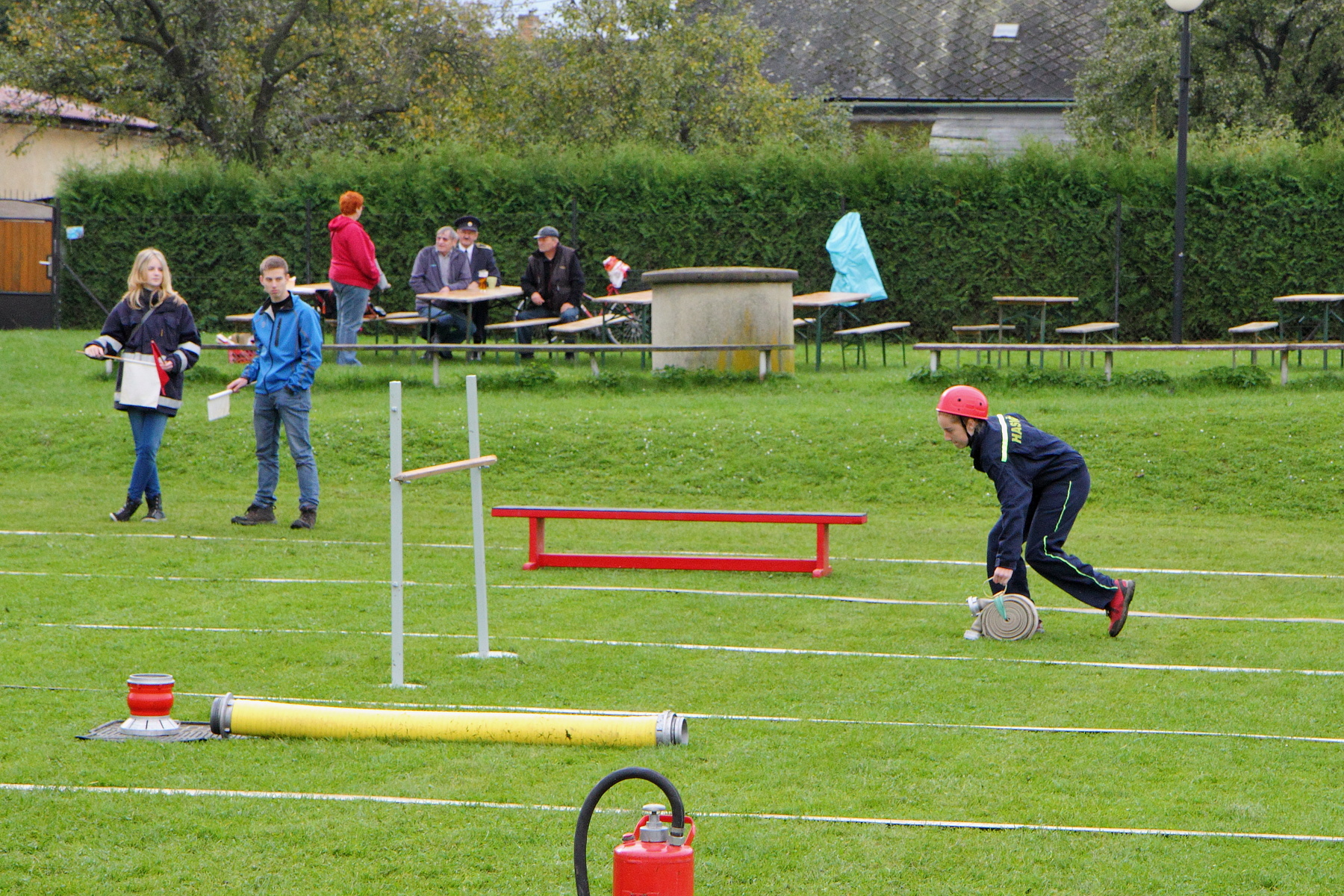Při štafetě se v osmi drahách překonávají následující překážky. Lavička, přenášení hadice C v kotouči, podběhnutí laťky, našroubování koše na savici, přeskok lehkoatletické překážky, přenesení hasícího přístroje, překonání nízké bariéry a v poslední dráze spojení hadicového vedení. Zapůjčili jsme si mladé hasiče z Bernartic a Vidnavy. Ve štafetě se mladým hasičům nedařilo a byli na posledním místě. Po štafetě probíhala střelba. Na střelbu naše družstvo doplnili hasiči ze Zlatých Hor. Našim se při střelbě dařilo a obsadili druhé místo.
