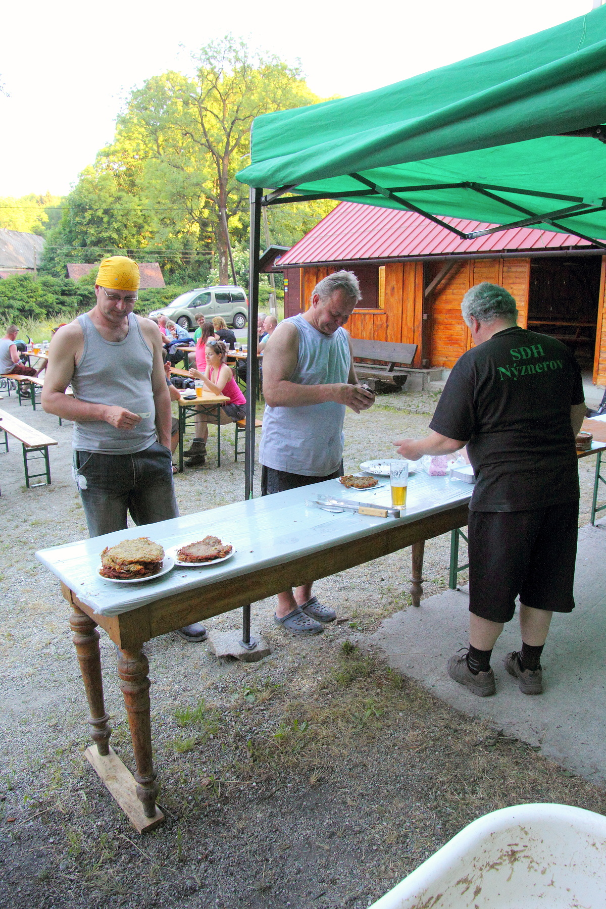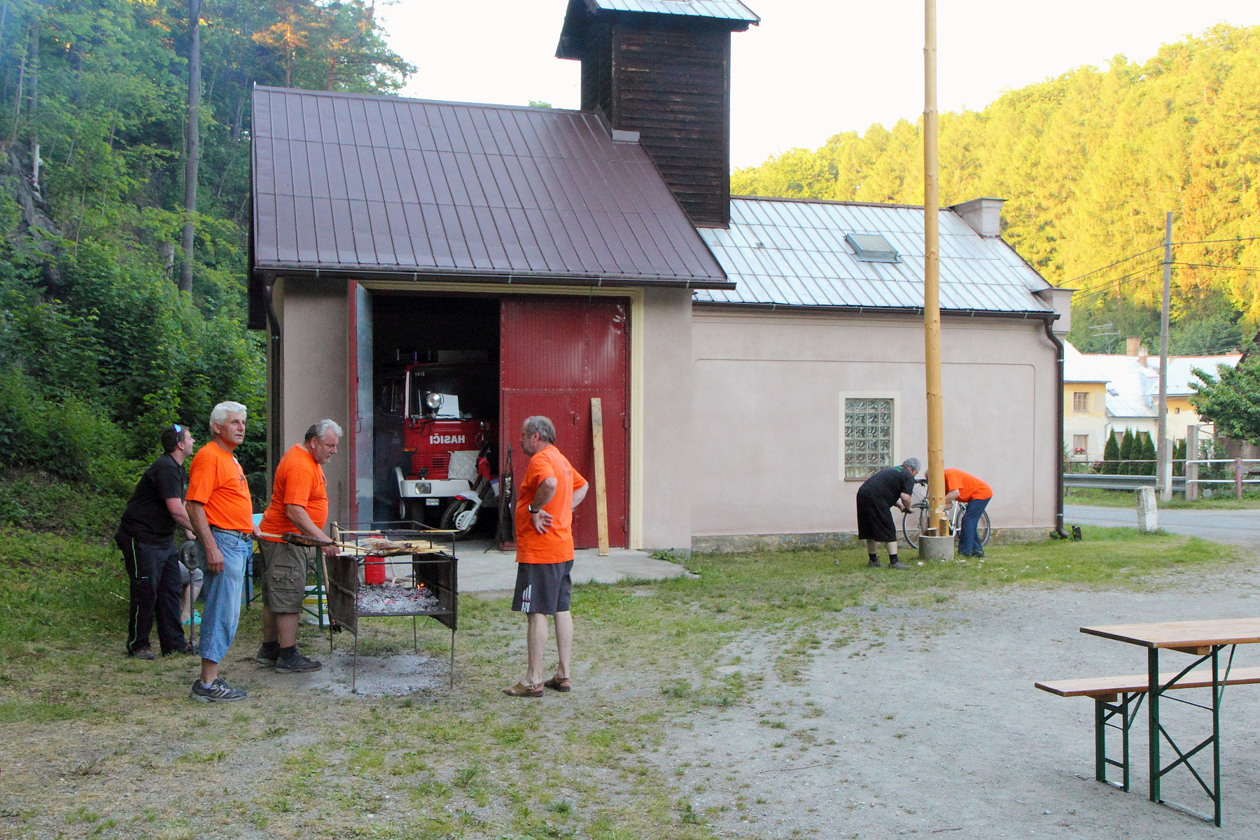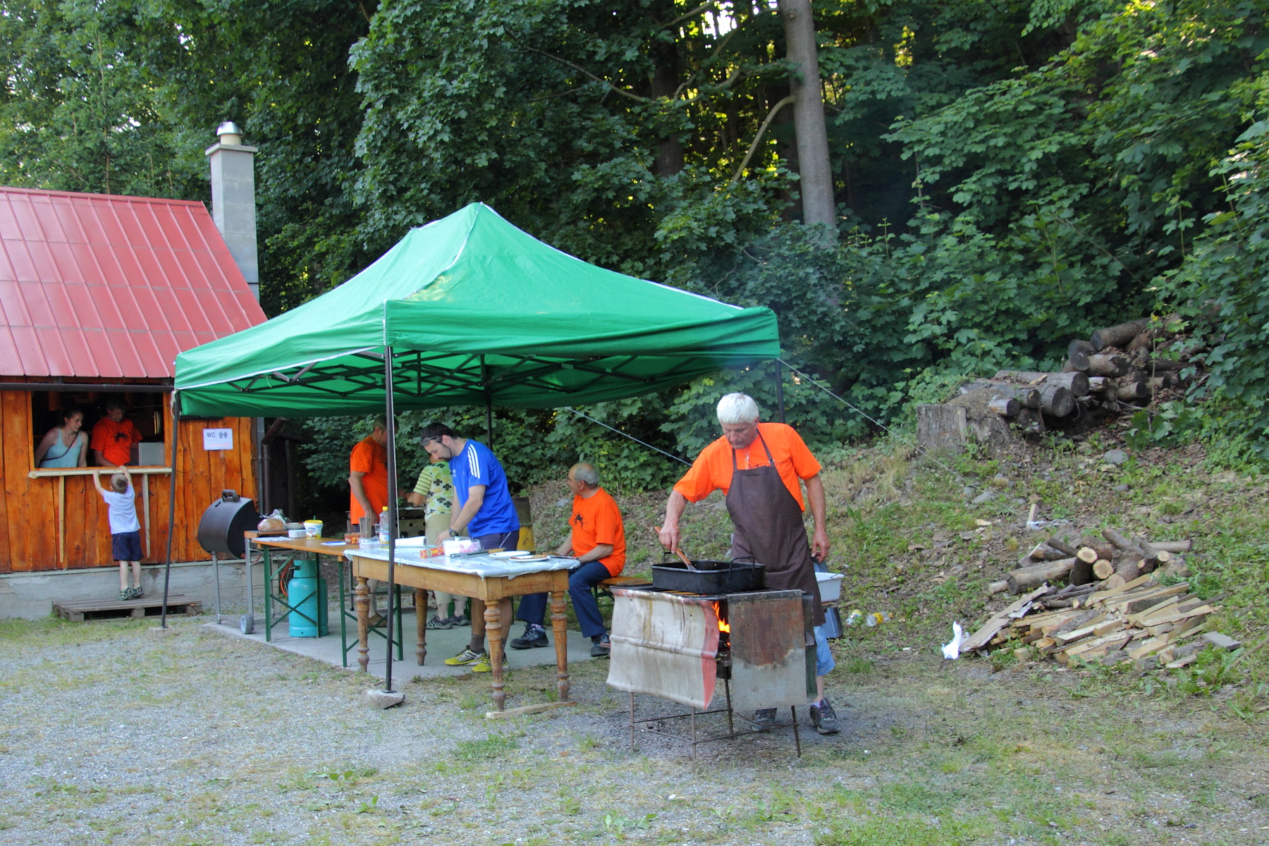Po přípravě prostranství a posezení jsme začali pomalu péct makrely a poté co dorazilo více návštěvníků i bramborové placky a maso. Postupně se začalo prostranství mezi hasičskou zbrojnicí a stodůlkou zaplňovat lidmi, až byly všechny stoly obsazené. Stále bylo teplo a počasí nám přálo.