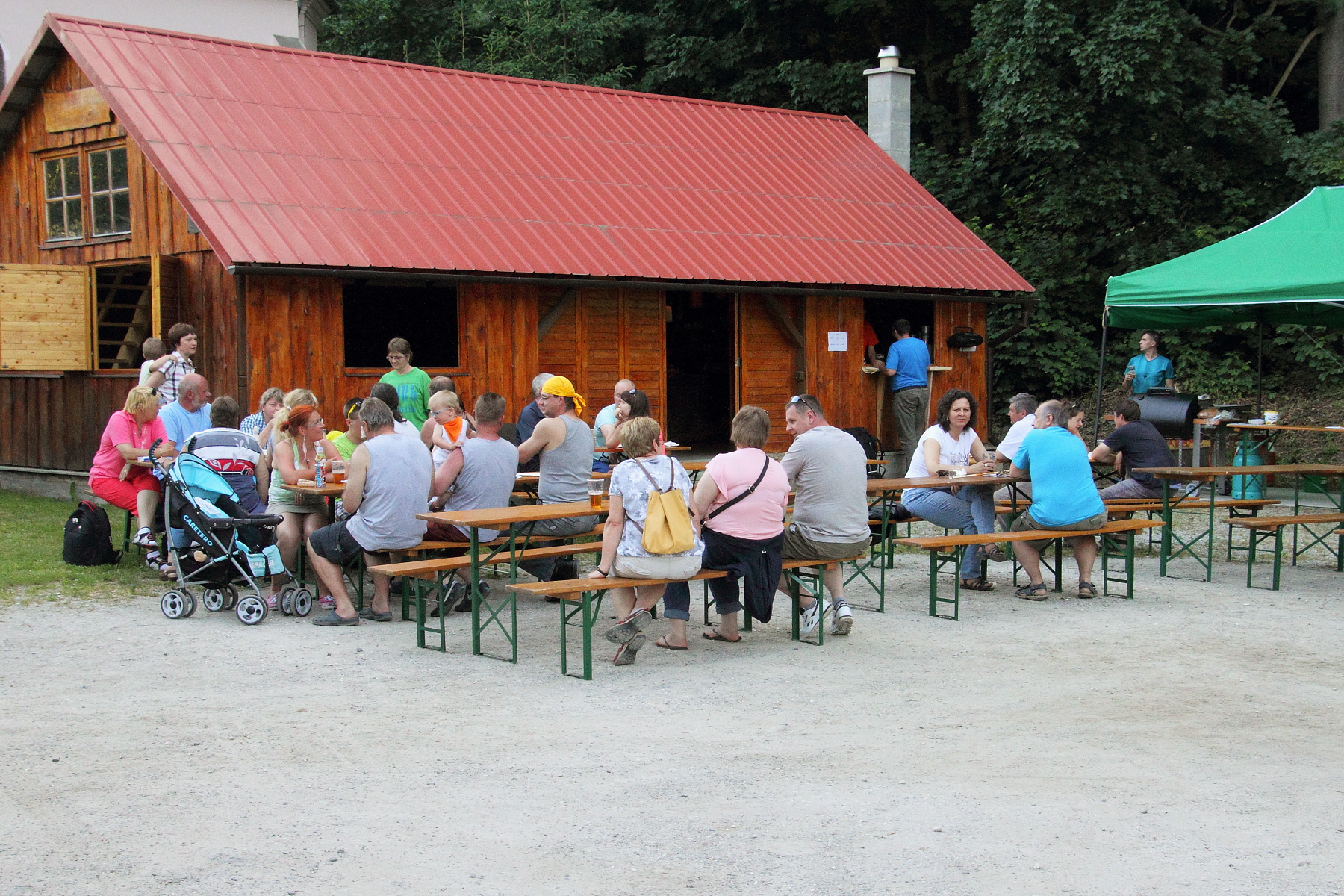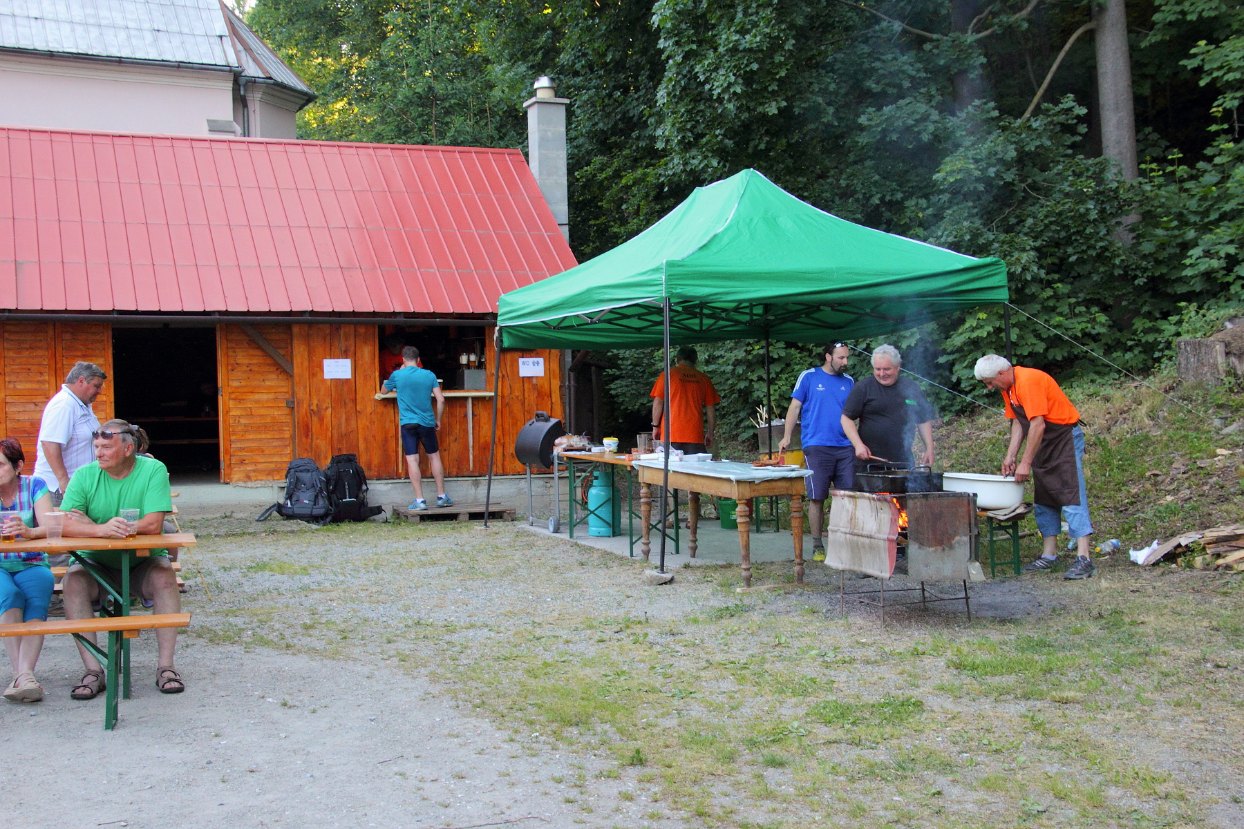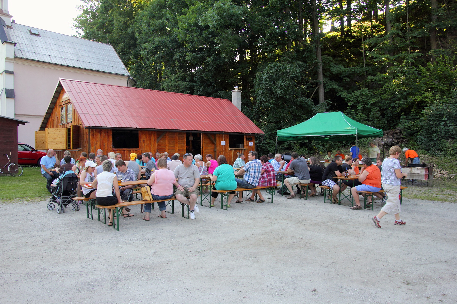 Po přípravě prostranství a posezení jsme začali pomalu péct makrely a poté co dorazilo více návštěvníků i bramborové placky a maso. Postupně se začalo prostranství mezi hasičskou zbrojnicí a stodůlkou zaplňovat lidmi, až byly všechny stoly obsazené. Stále bylo teplo a počasí nám přálo.