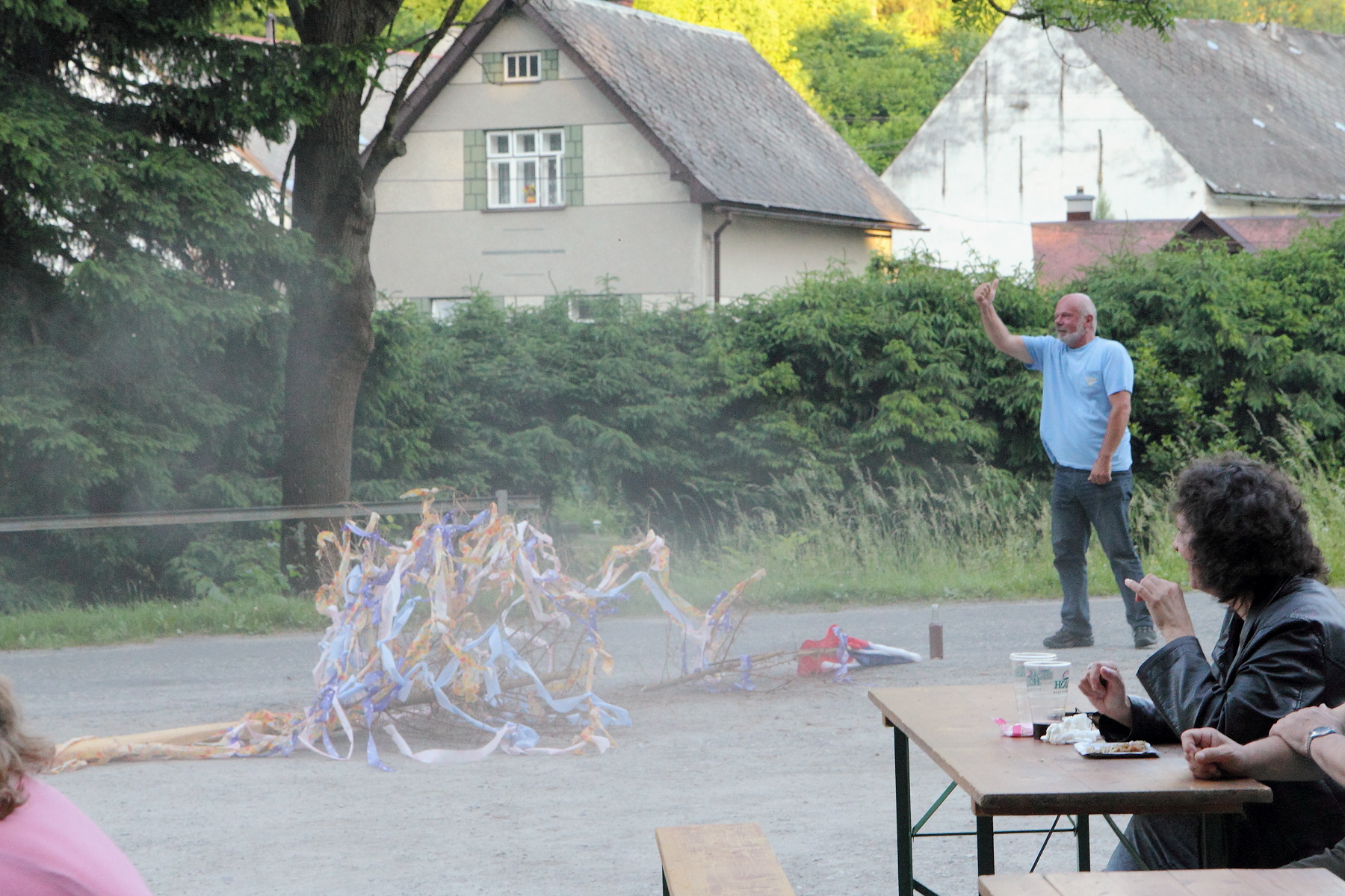 Před osmou hodinou nastal okamžik, kvůli kterému jsme se všichni sešli a to vlastní kácení májky. Toho se chopili za zvuku ruční sirény členové našeho sboru, kteří ji poslali k zemi.