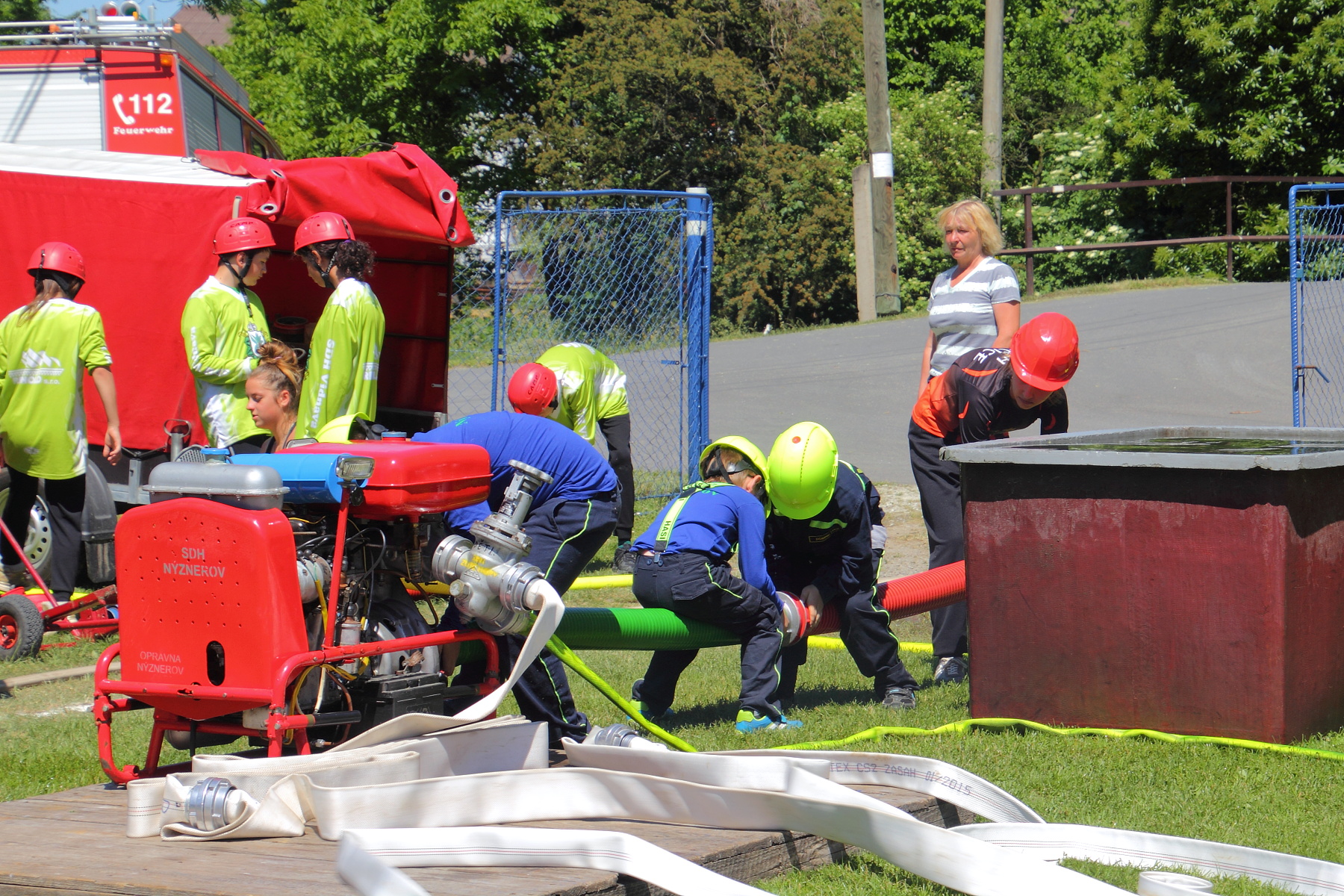 Následoval požární útok, na který jsme si zapůjčili na koš a na rozdělovač dvě mladé hasičky z Vlčic. Proběhly dva pokusy požárních útoků. Po jejich absolvování jsme odjeli zpět do Nýznerova, kde tento den proběhne kácení máje.