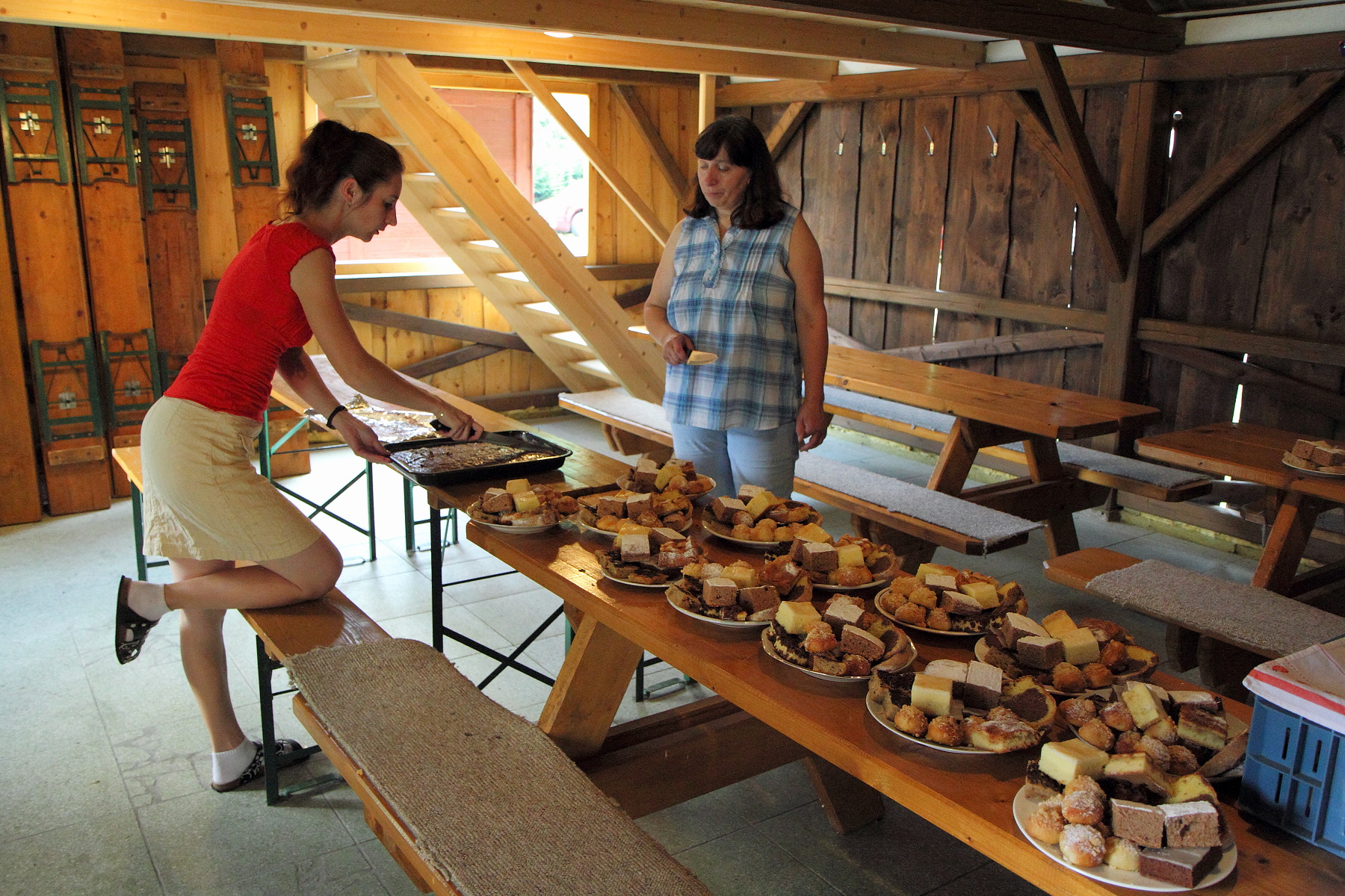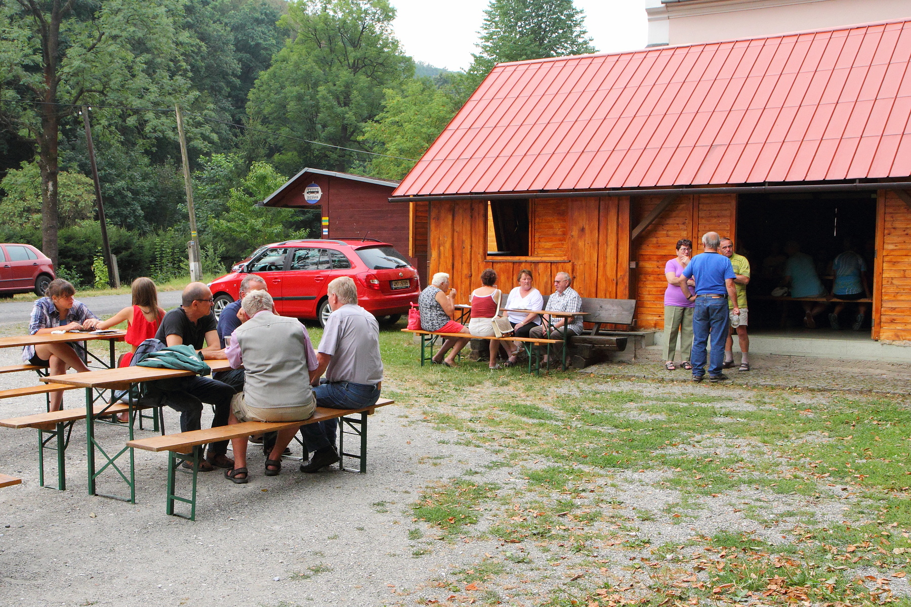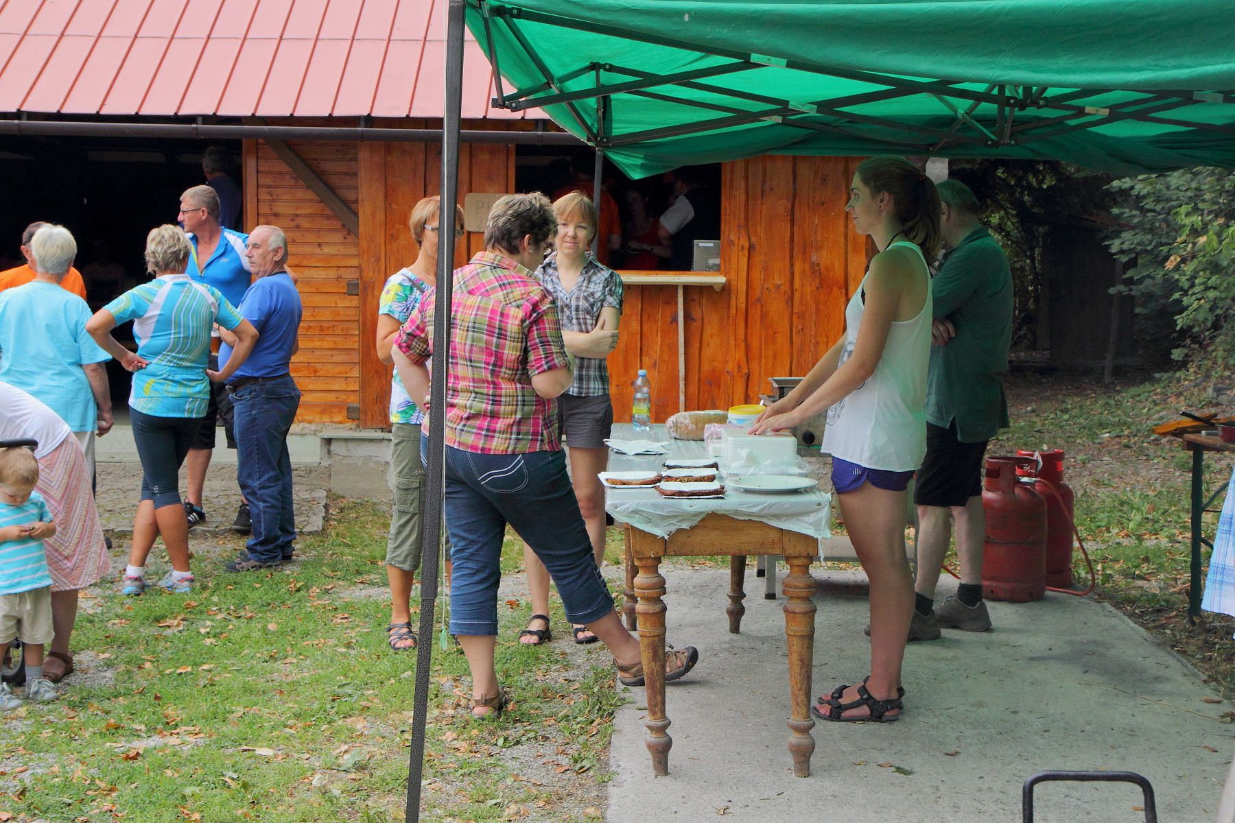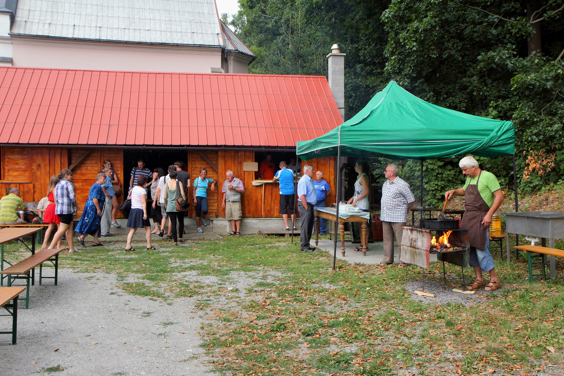 Již po ránu jsme se sešli u hasičské zbrojnice a připravovali jídlo, grily, stan a stoly na odpoledne. Během mše jsme připravili kávu a buchty na talířky. Buchet bylo letos doneseno velké množství různých druhů, takže si každý mohl vybrat, která mu chutnala nejlépe. Je třeba ocenit ochotu těch, co je napekly. Po kávě bylo připraveno další občerstvení a to tradiční bramboráky a pečené maso.