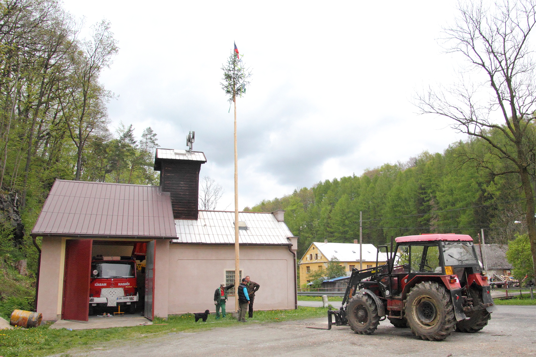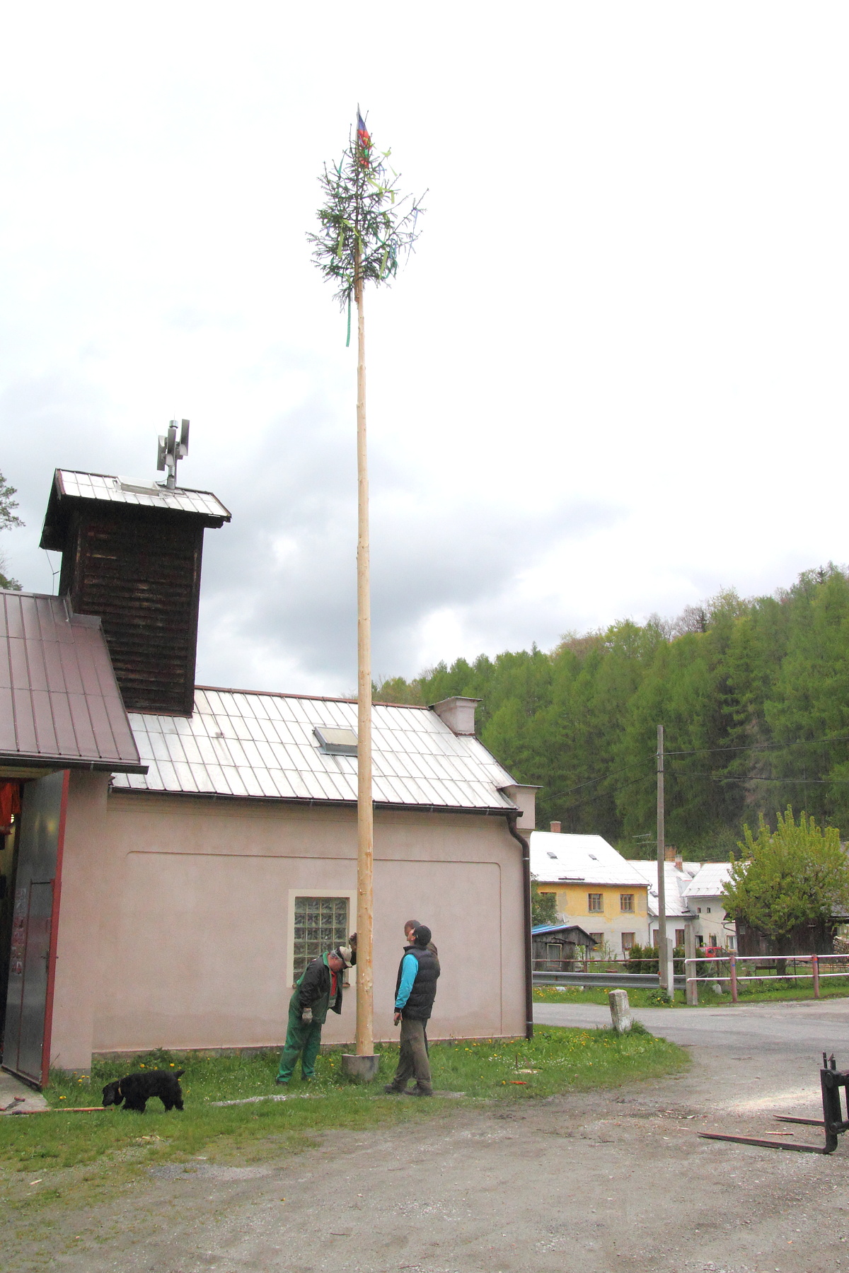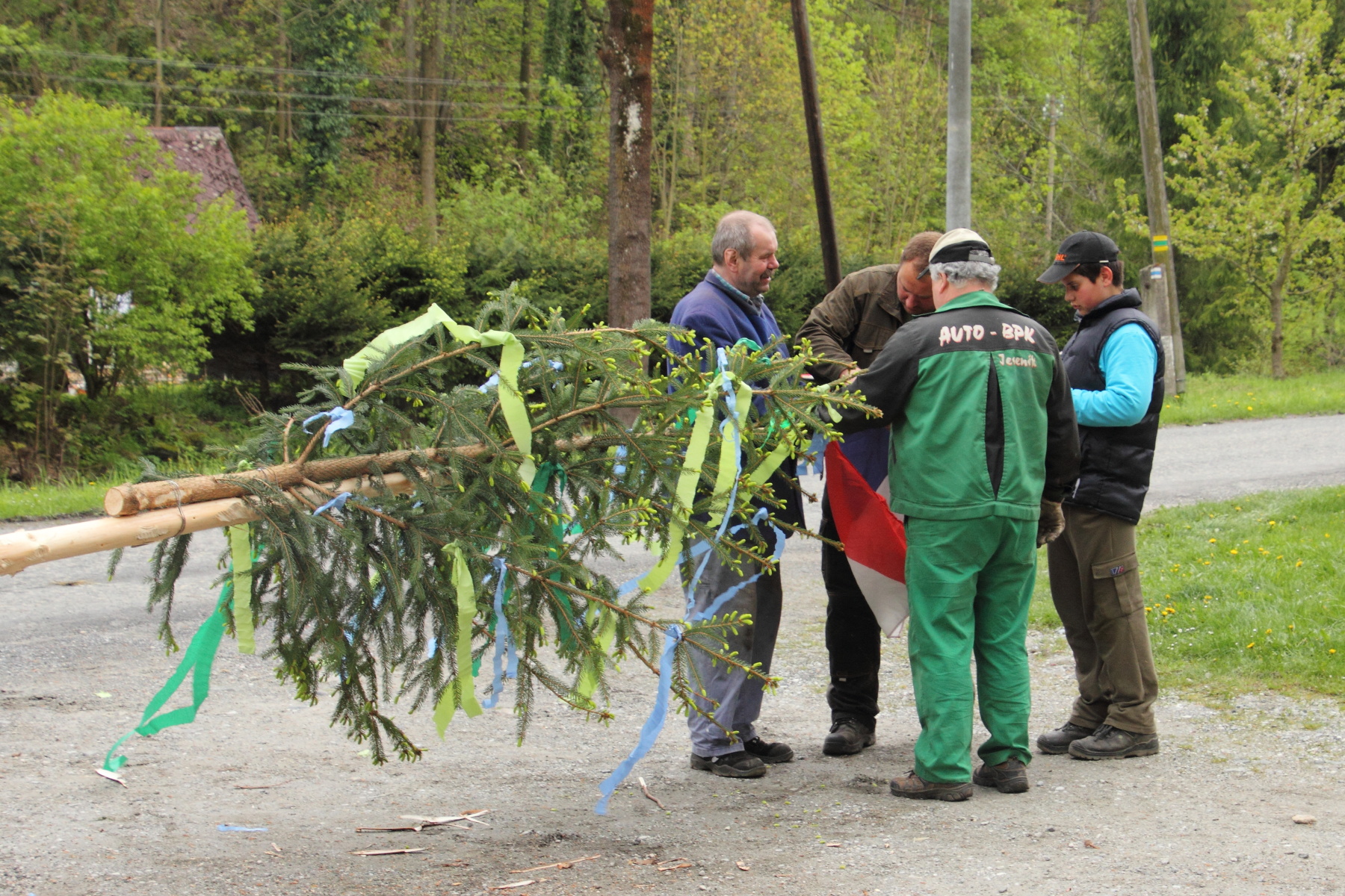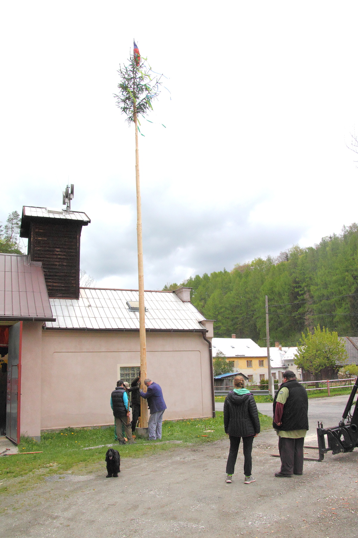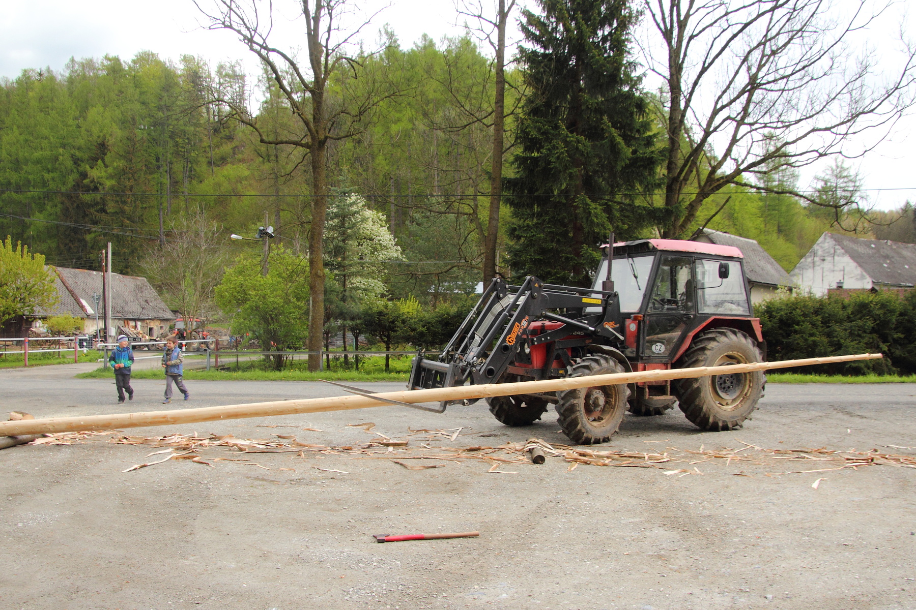 Tento den odpoledne se sešlo několik členů sboru, aby postavili májku. Po dovezení májky na místo proběhlo oškrábání kůry, které je docela zdlouhavé. Po upevnění špice a jejím nazdobení jsme celou májku pomocí traktoru s čelním nakladačem postavili na obvyklé místo. S prací pomohlo i pár mladých hasičů.