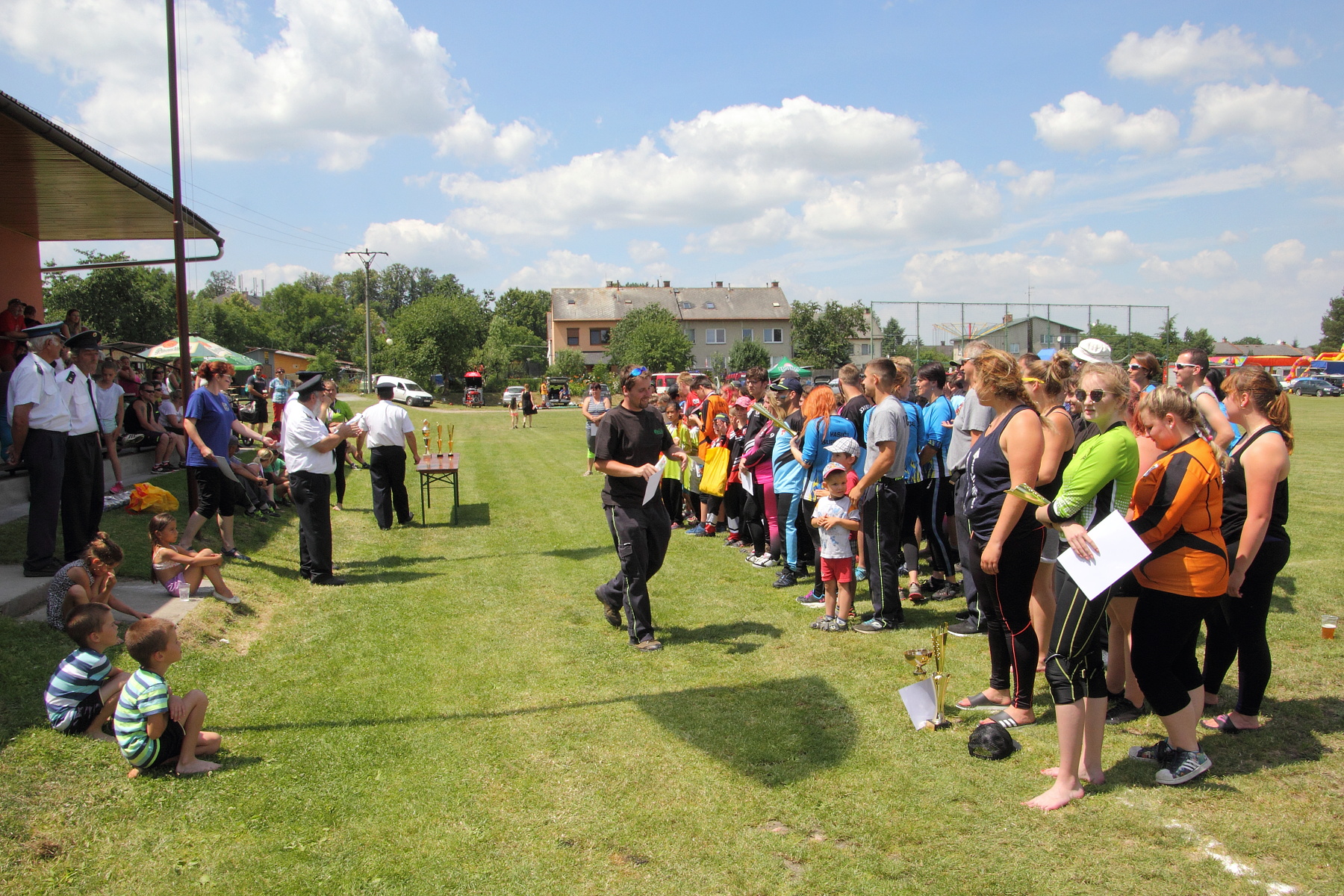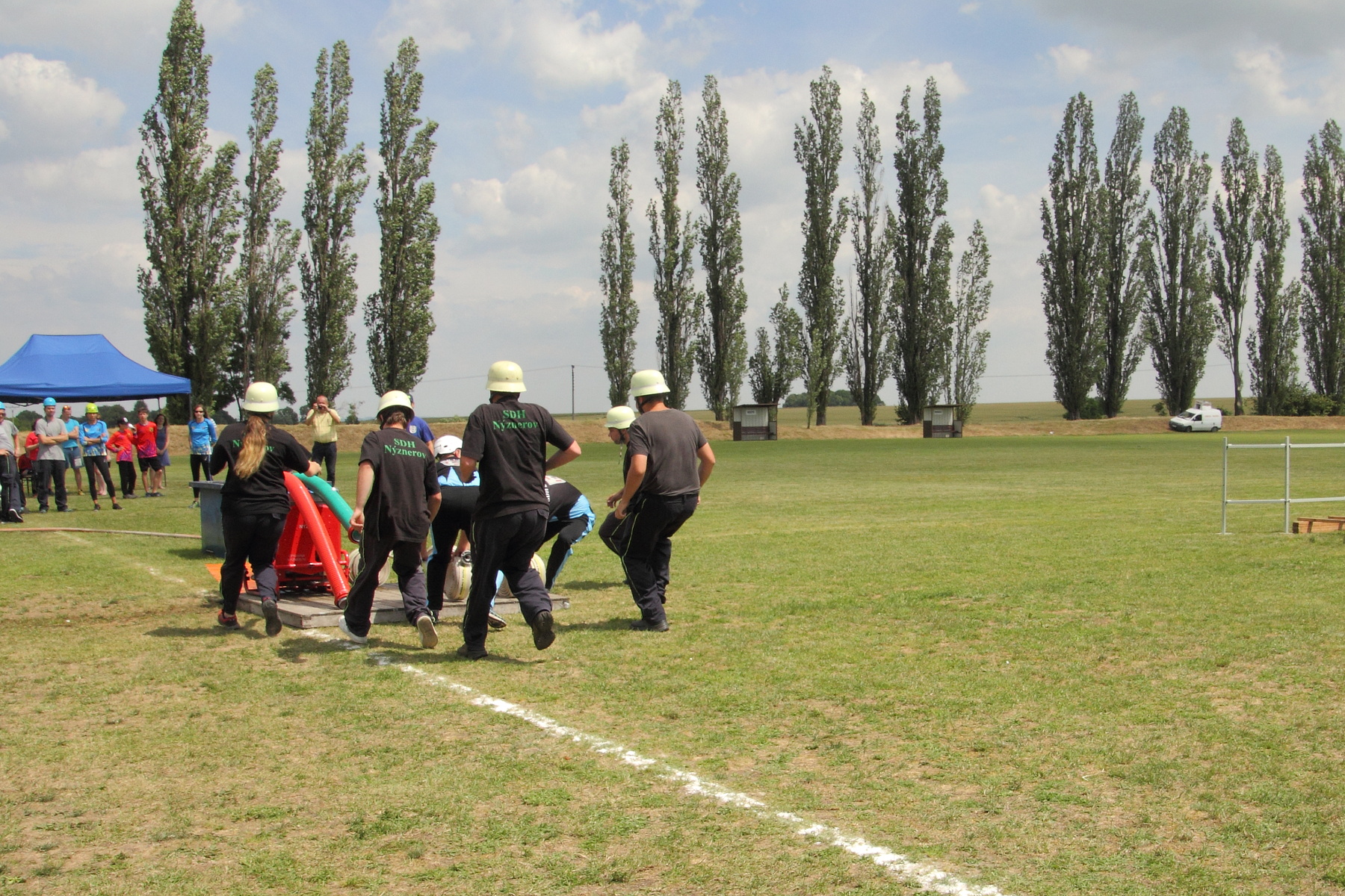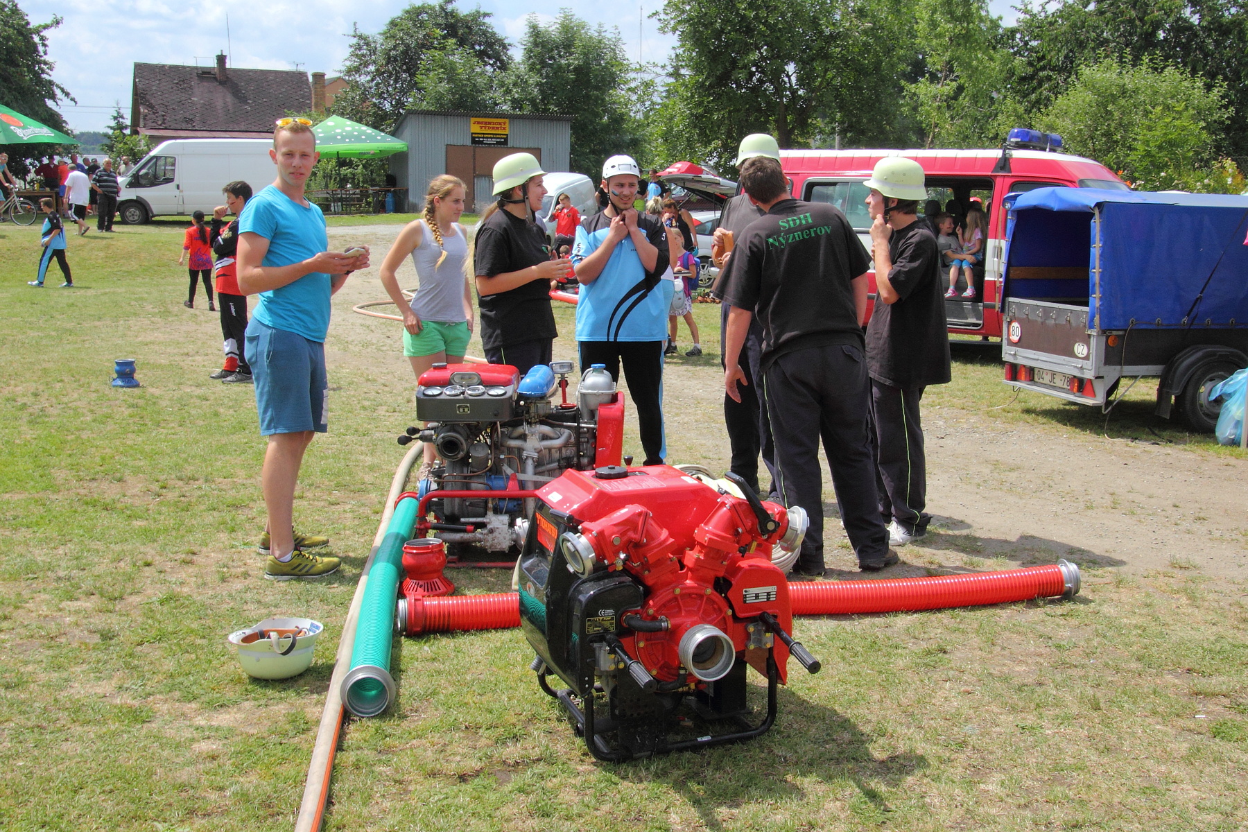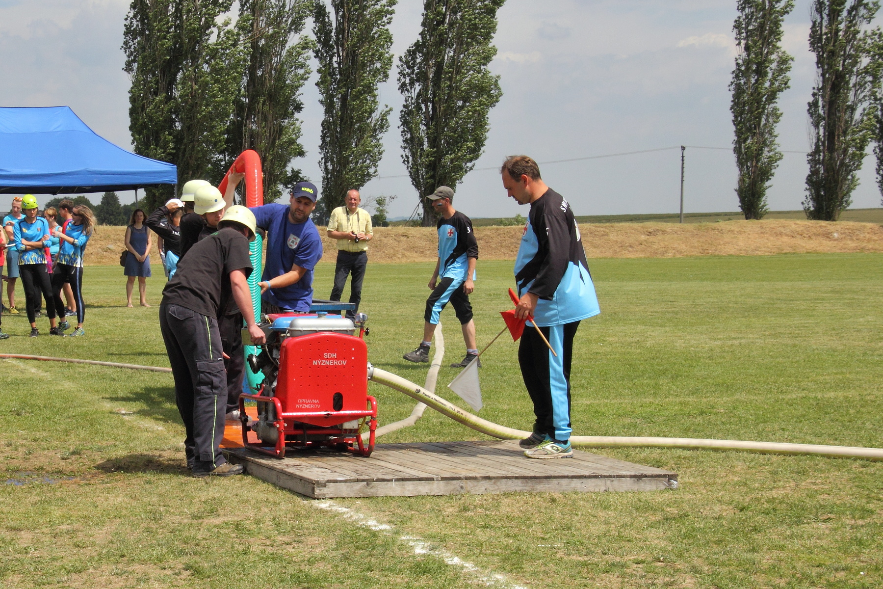 Z klasické sestavy našeho družstva chyběl jeden proudař a strojník. Zapůjčili jsme si tedy jednoho proudaře a dalšího závodníka na hadice B. Oba z Bernartic. I tak nám chyběl oproti jiným družstvům jeden soutěžící. Dále se s námi na soutěž vyrazila podívat i jedna mladá hasička, která již u nich musí končit a přejde k dospělým. Po jedné hodině byl společný nástup mladých hasičů a dospělých. Při něm proběhlo vyhlášení výsledků celého dne.