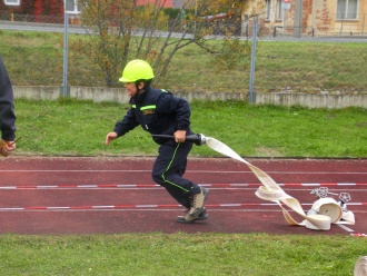 Jako první běžela po zahájení družstva kategorie mladších. Tři z našich mladých hasičů běželi i za Zlaté Hory v jejich družstvu mladších.