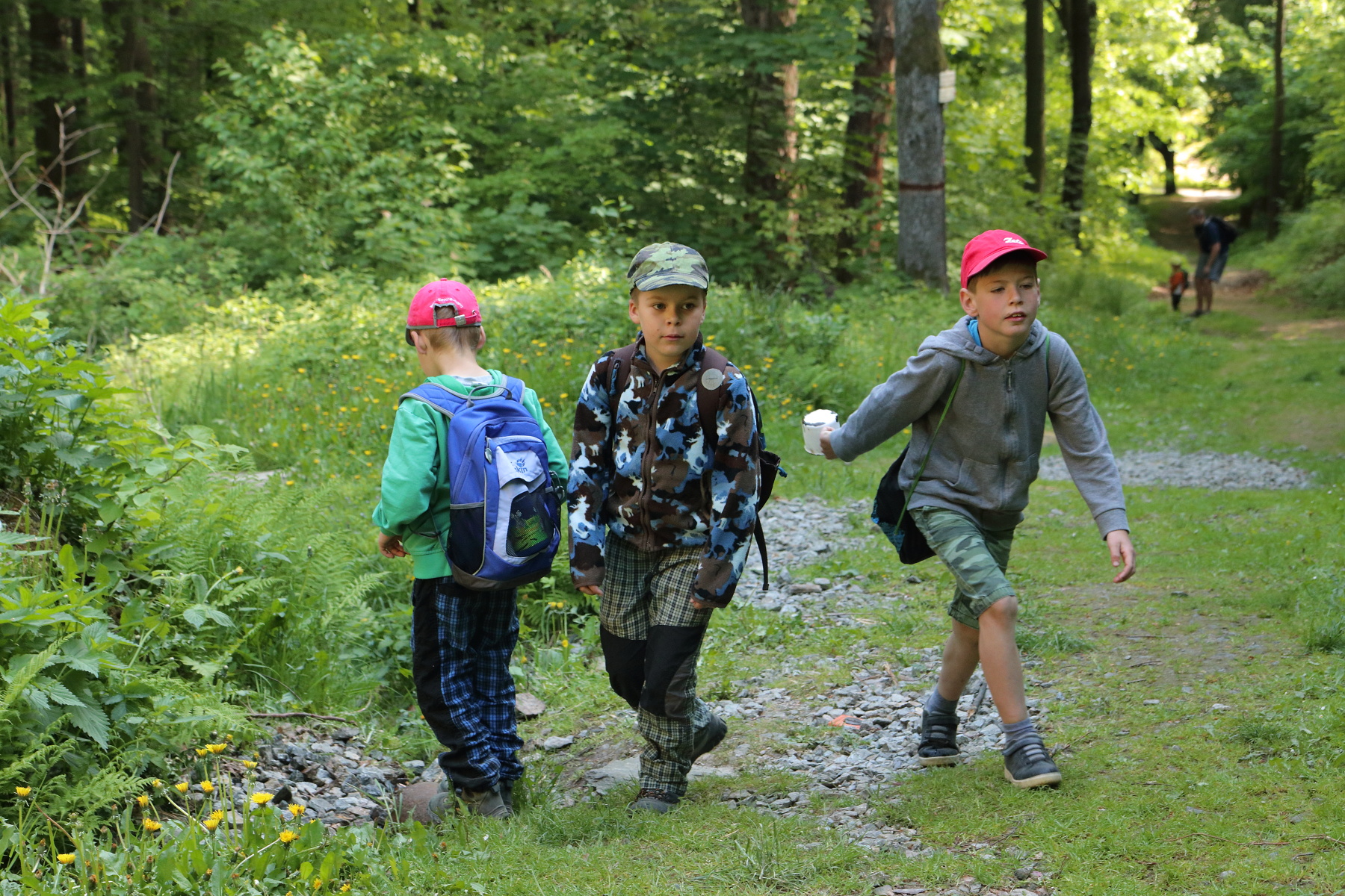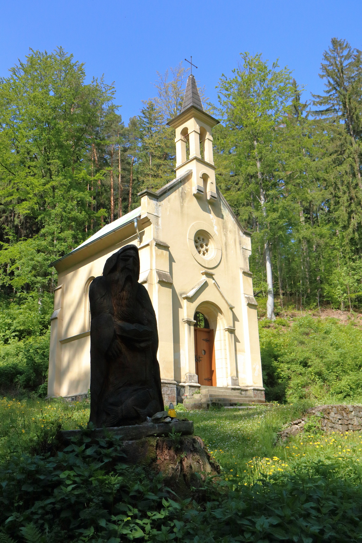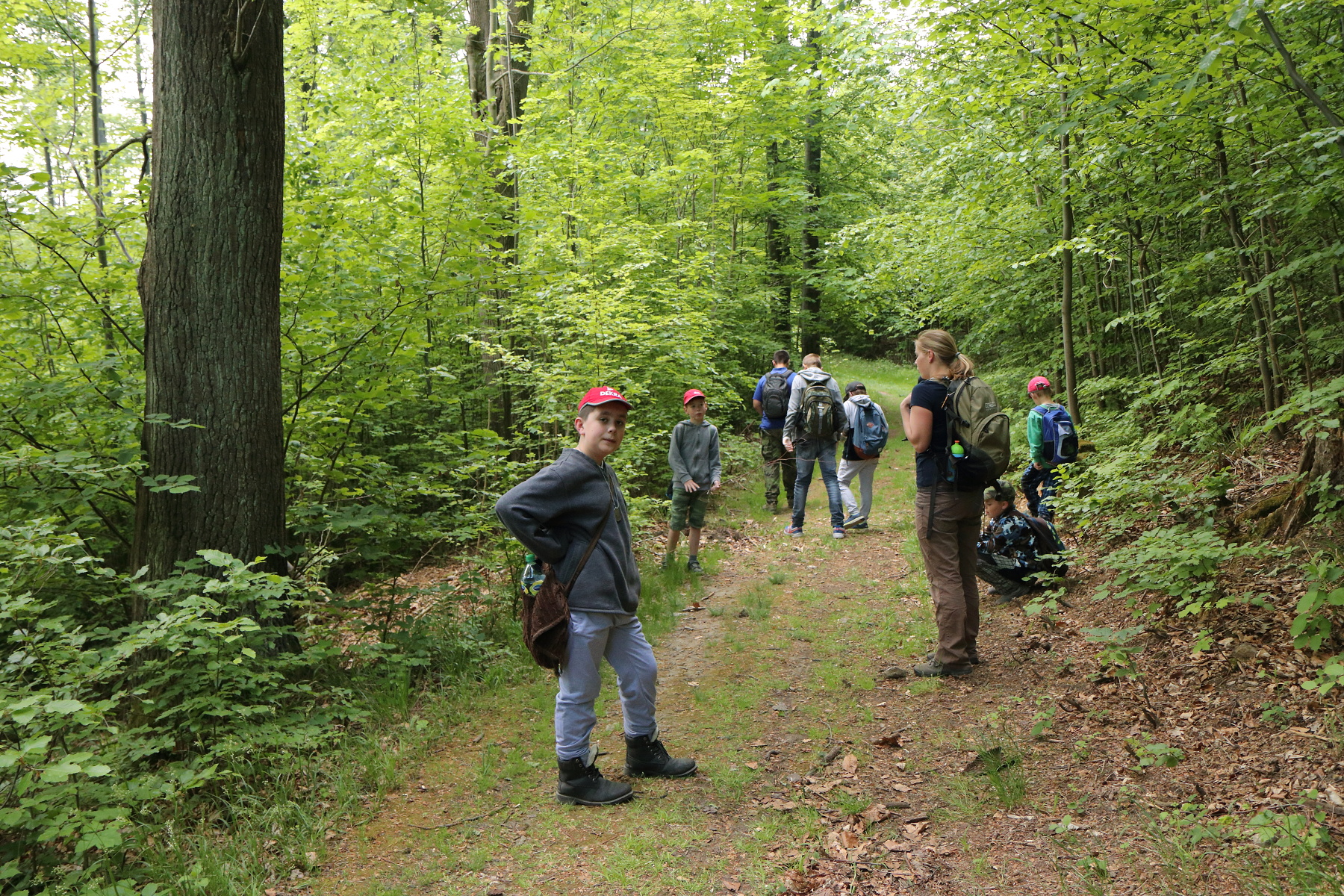 Z parkoviště před zákazem vjezdu jsme vyrazili na pochod. Zamířili jsme prvně štěrkovou lesní cestou ke kapličce sv. Antonína, která je podobná té v Nýznerově. U kapličky mladé hasiče lákal především pramen, z kterého ten den voda přímo netekla, ale vyvěrala až o něco níže pod cestou.