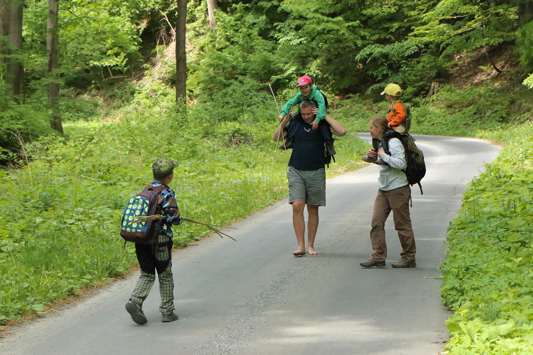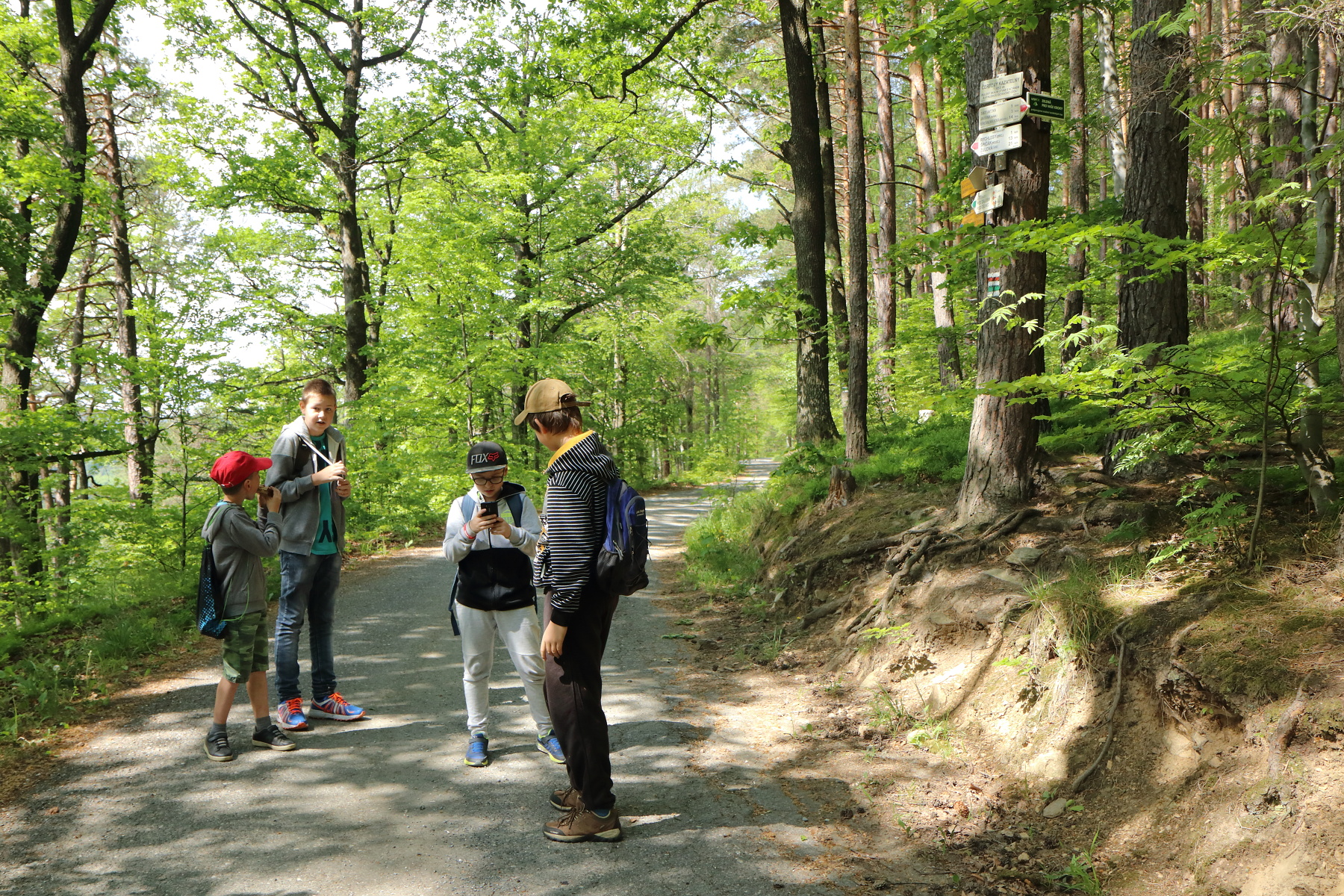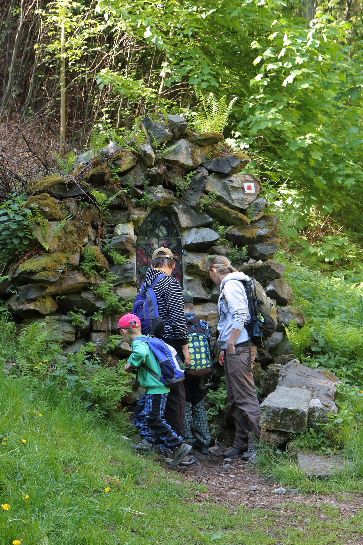 Z parkoviště před zákazem vjezdu jsme vyrazili na pochod. Zamířili jsme prvně štěrkovou lesní cestou ke kapličce sv. Antonína, která je podobná té v Nýznerově. U kapličky mladé hasiče lákal především pramen, z kterého ten den voda přímo netekla, ale vyvěrala až o něco níže pod cestou.