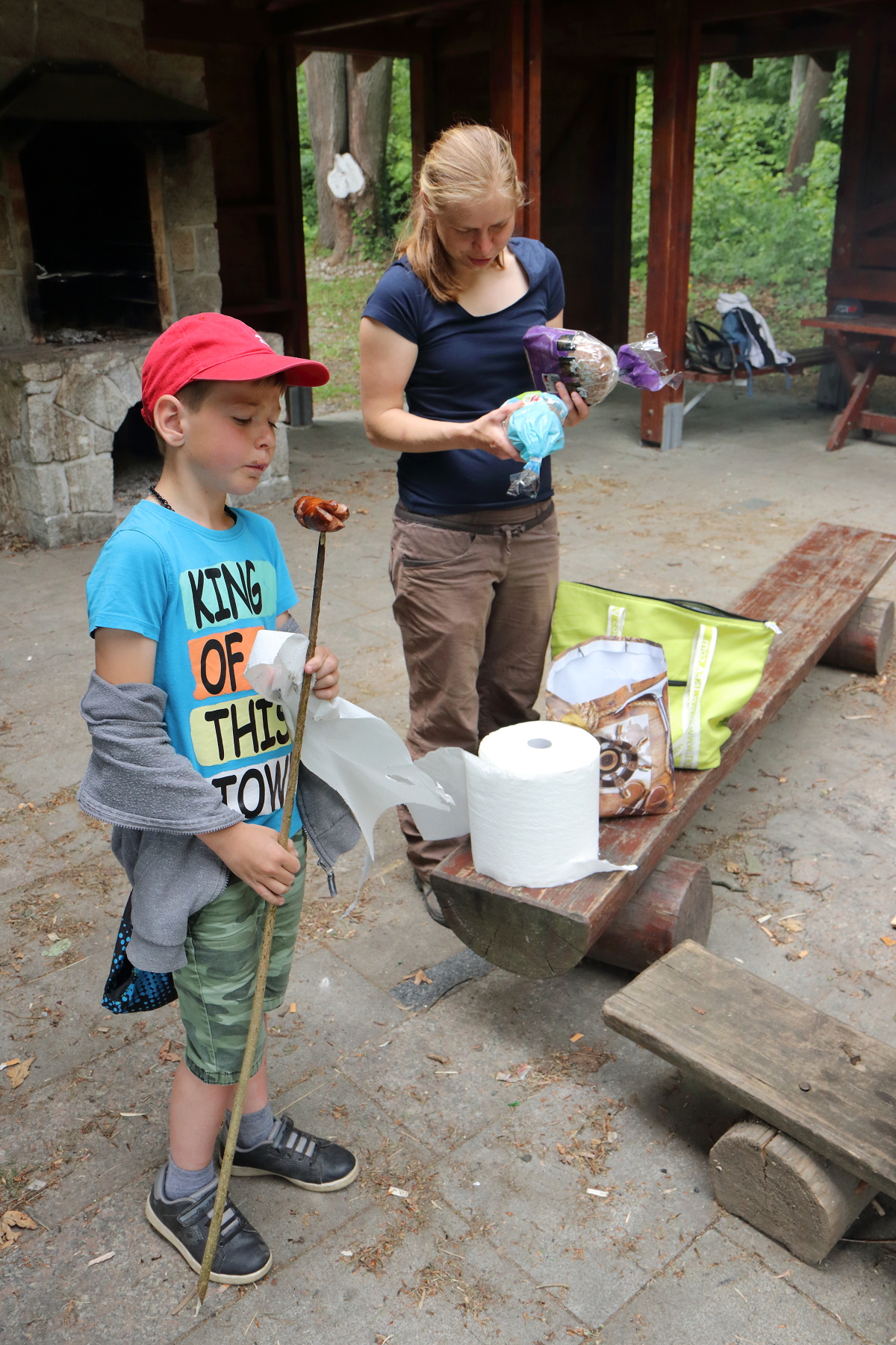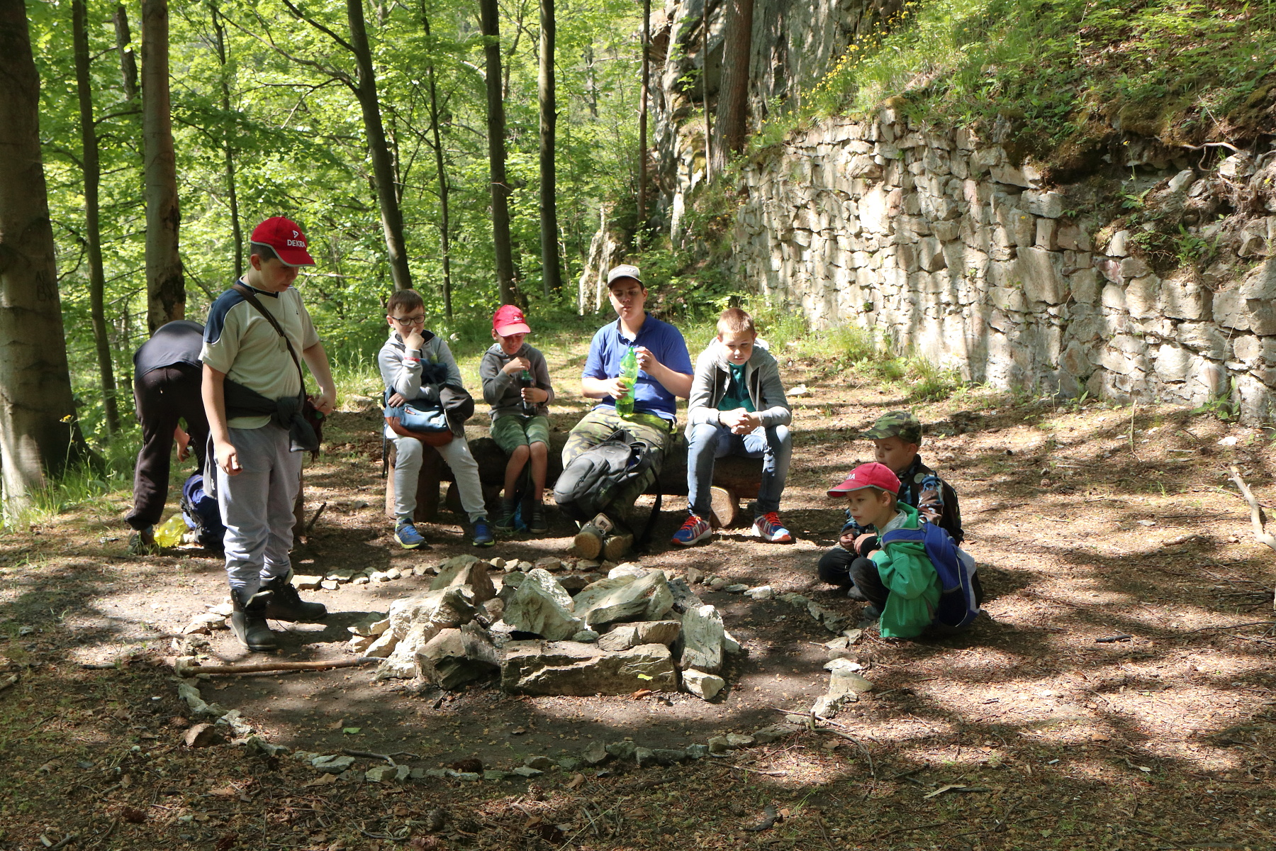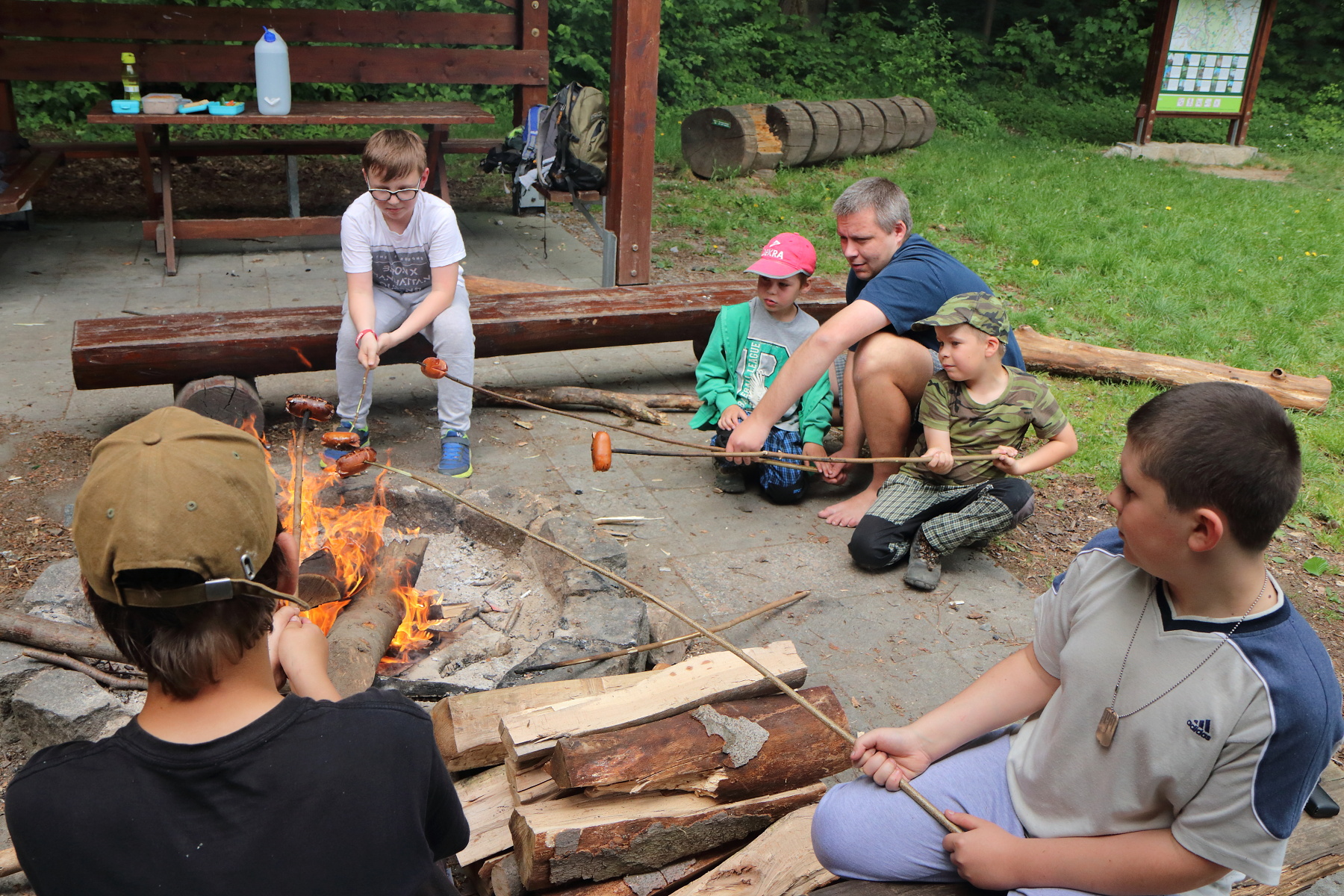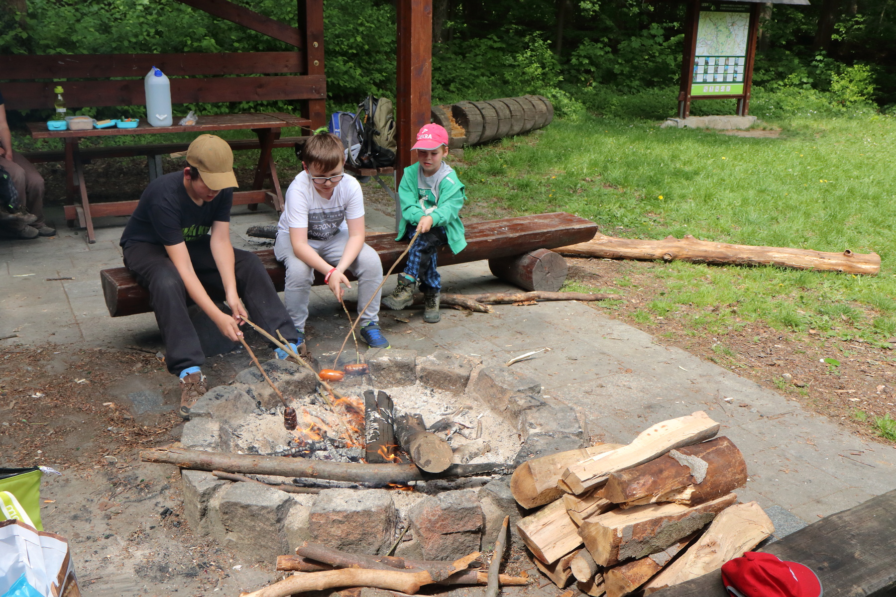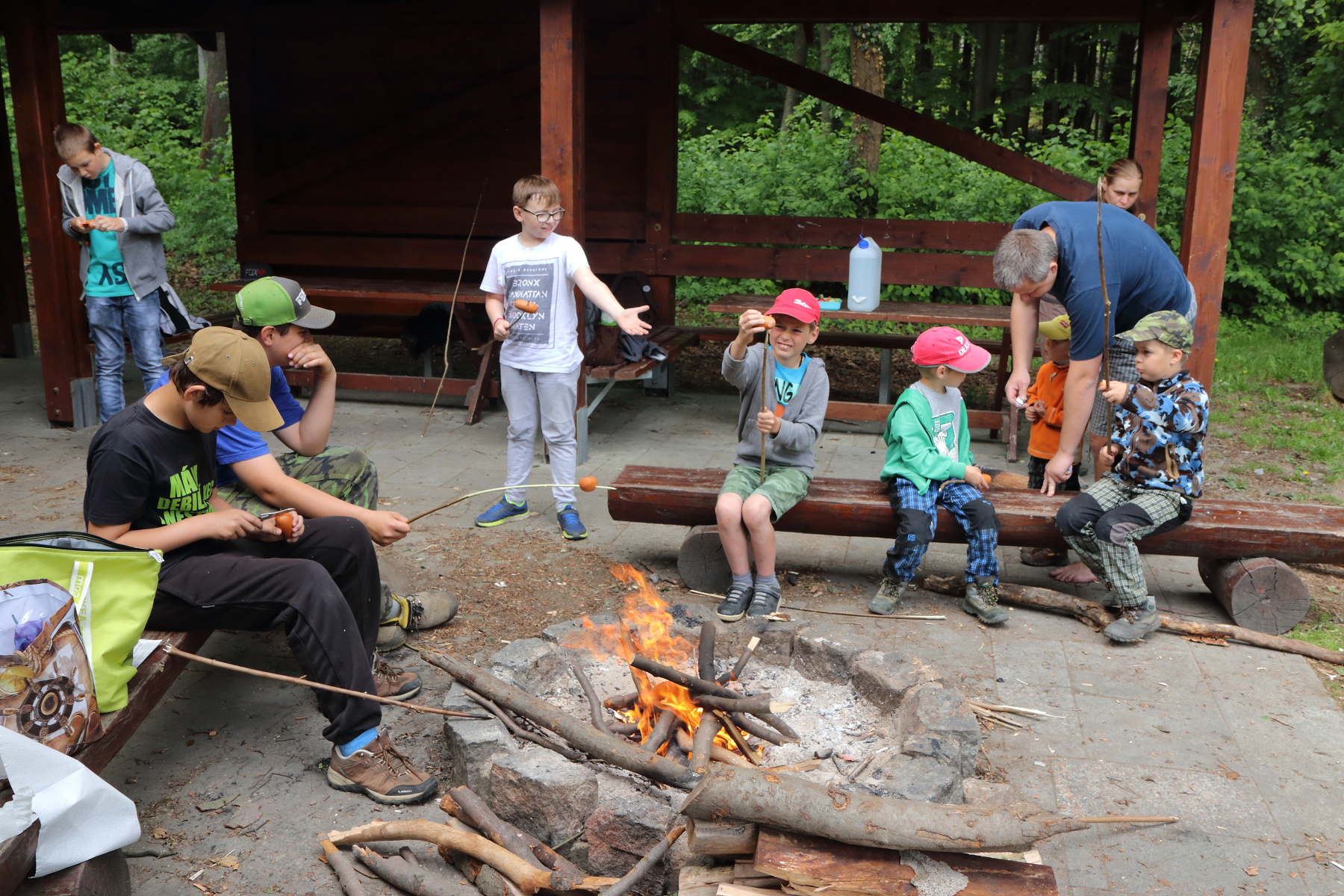 Pod tančírnou se u potoka nachází větší přístřešek. V něm jsme udělali poslední přestávku a to na oběd. Opekli jsme špekáčky, dali jsme si buchty, zeleninu a vše co si kdo s sebou donesl. Poté jsme místo uklidili, oheň uhasili a vyrazili auty zpět do Nýznerova.