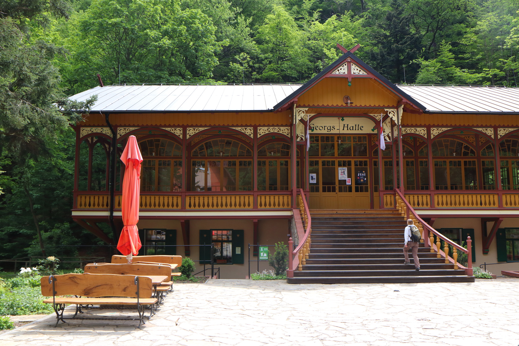Po krátkém oddechu jsme sestoupili do údolí a pokračovali po asfaltové cestě zpět k Tančírně. U ni jsme obdivovali její zrekonstruovanou podobu. Mladí hasiči jistě neznají její podobu před rekonstrukcí, ale mi z doprovodu jsme tančírnu zažili pomalu jako ruinu.