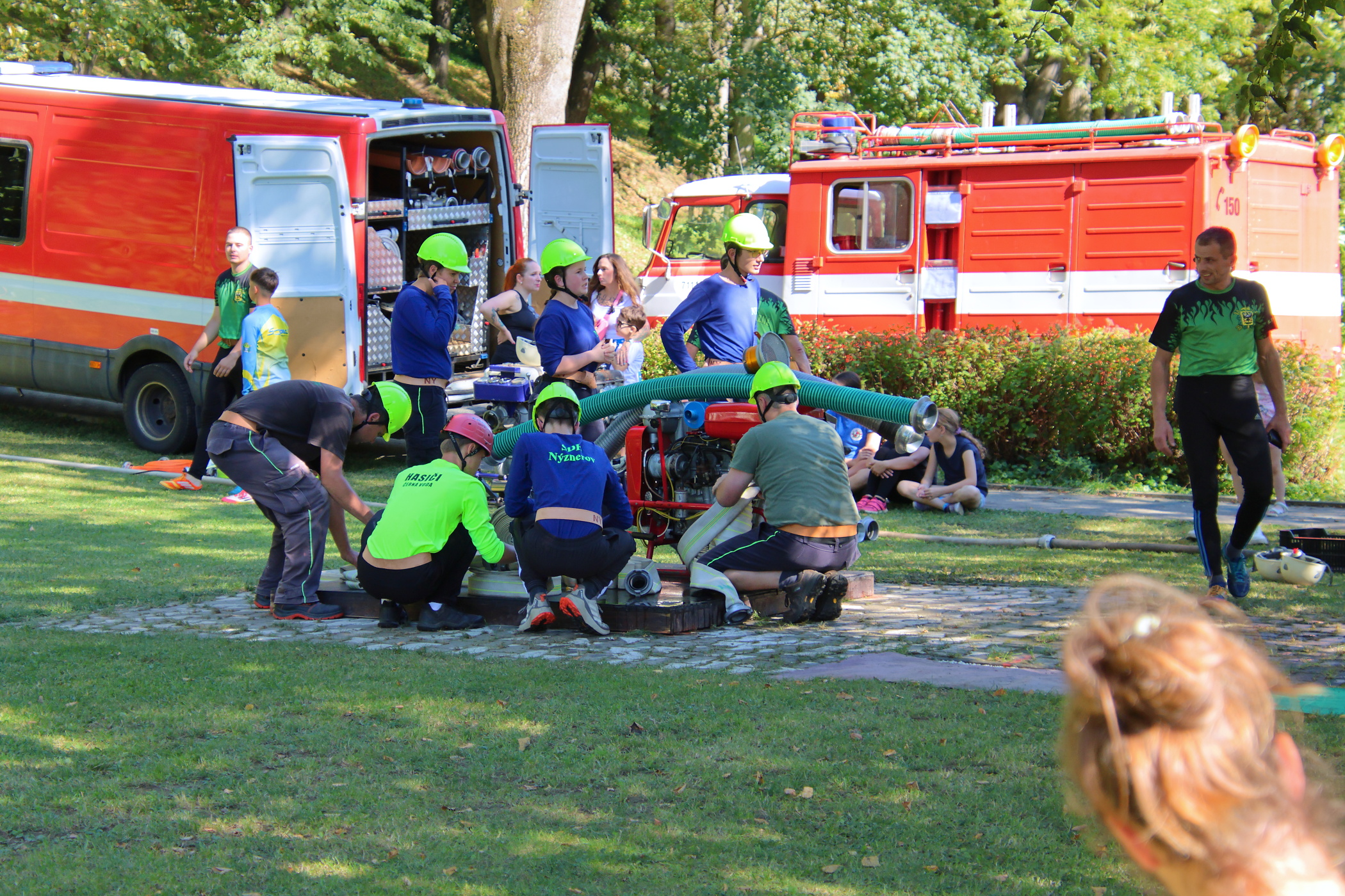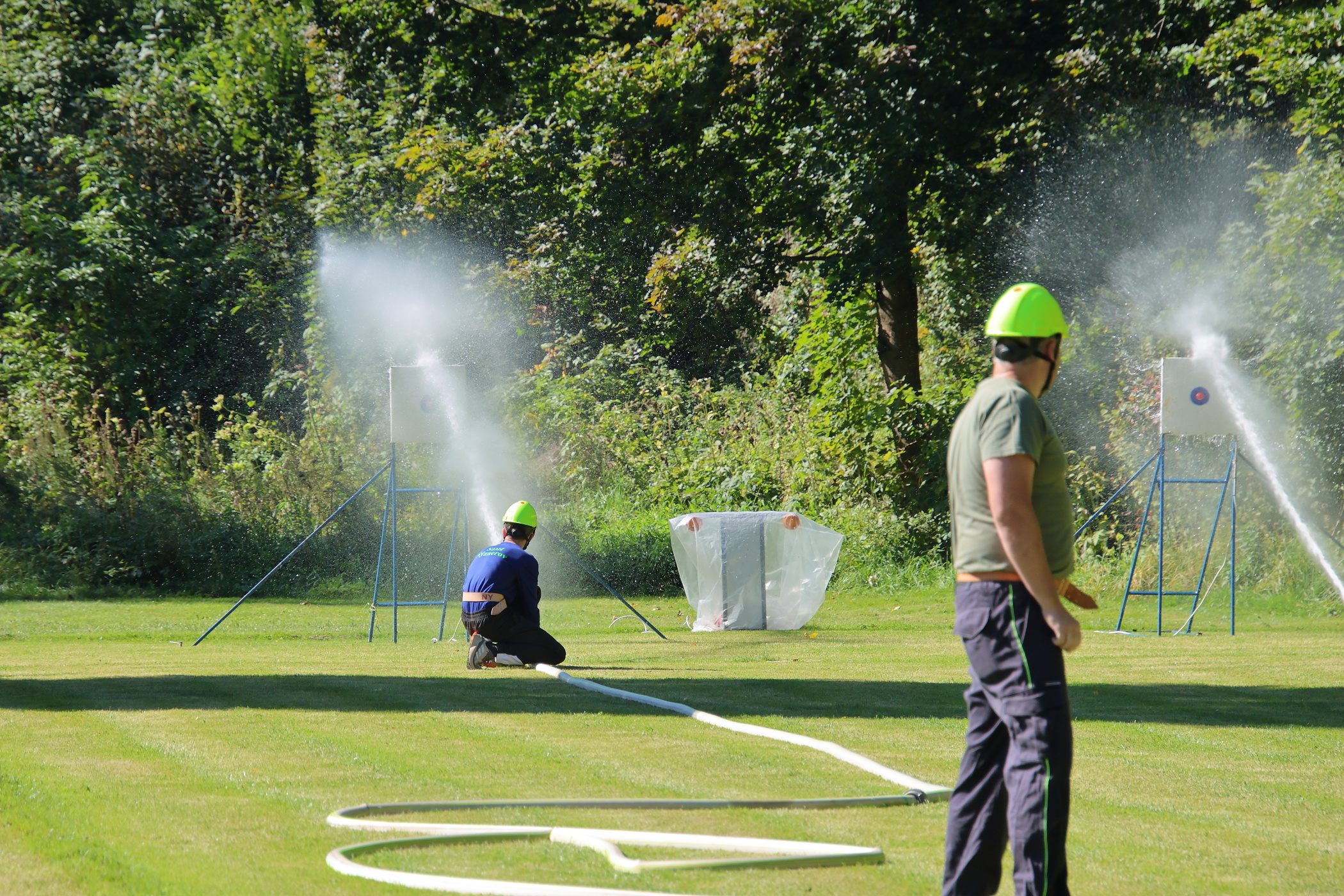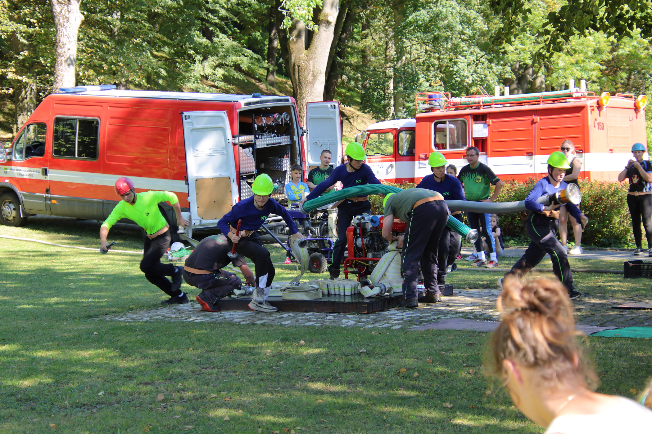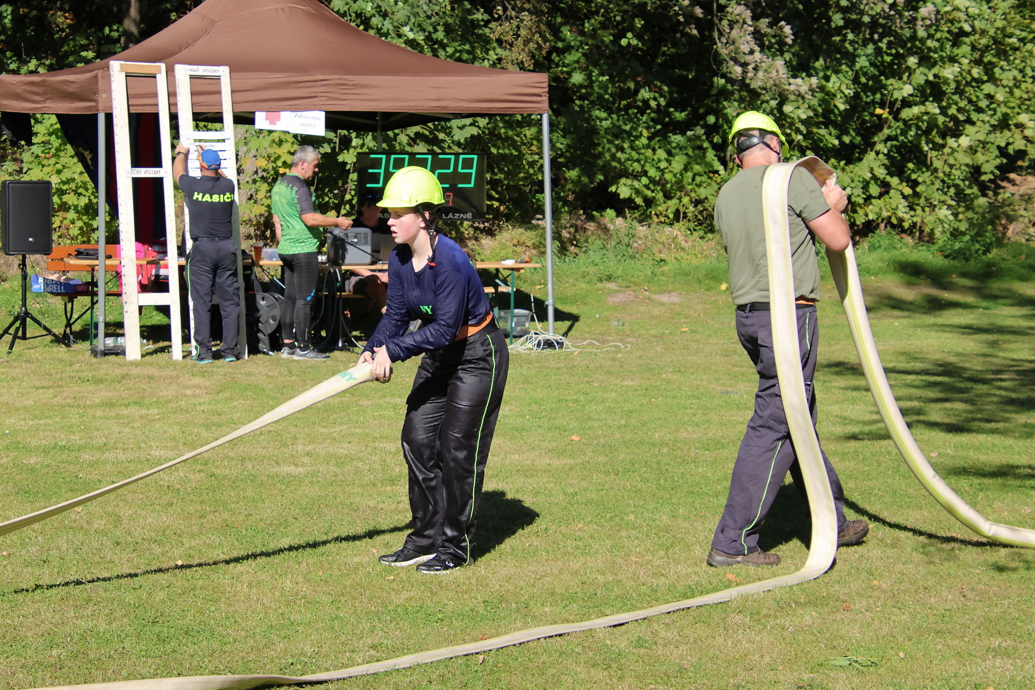 Pro většinu členů našeho družstva to byla jejich první soutěž za dospělé. Jeden z nich soutěžil poprvé. Nachystali jsme si základnu a poté jsme se připravili na start. Vzadu jsme měli stejné obsazení jako za mladé hasiče. Na pravém proudu běžel zapůjčený hasič z Černé Vody. Pokusy neproběhly úplně hladce, zvlášť u toho druhého došlo k odpojení hadice B od rozdělovače. Ta byla následně opět napojena a pokus jsme dokončili.