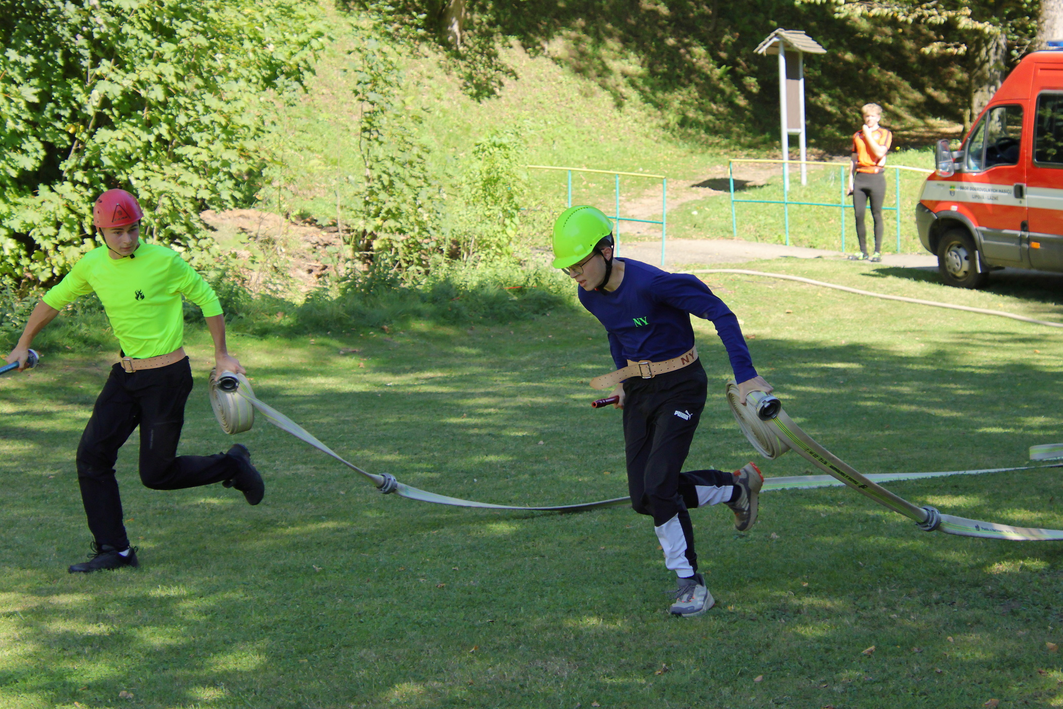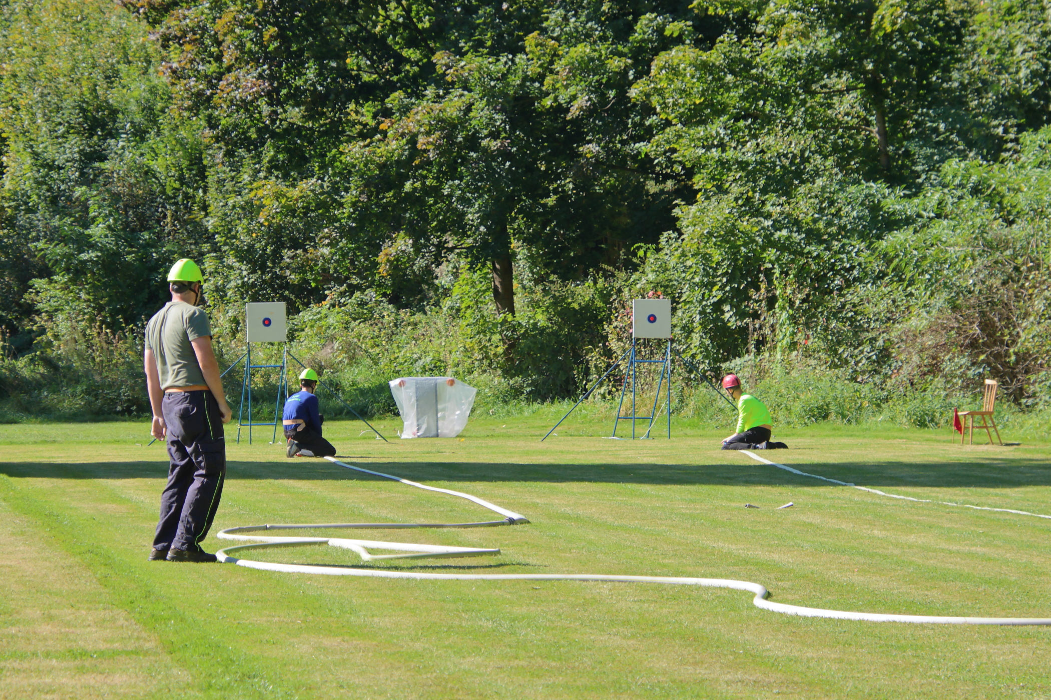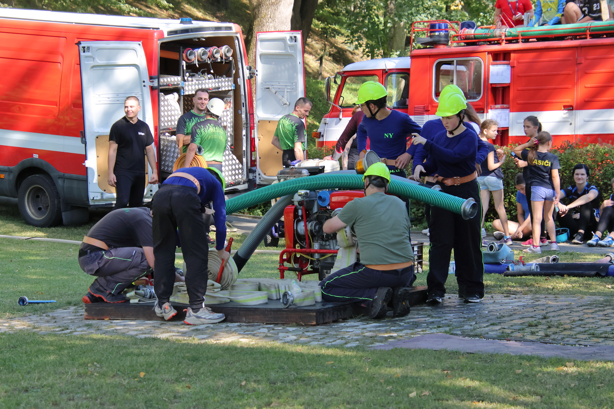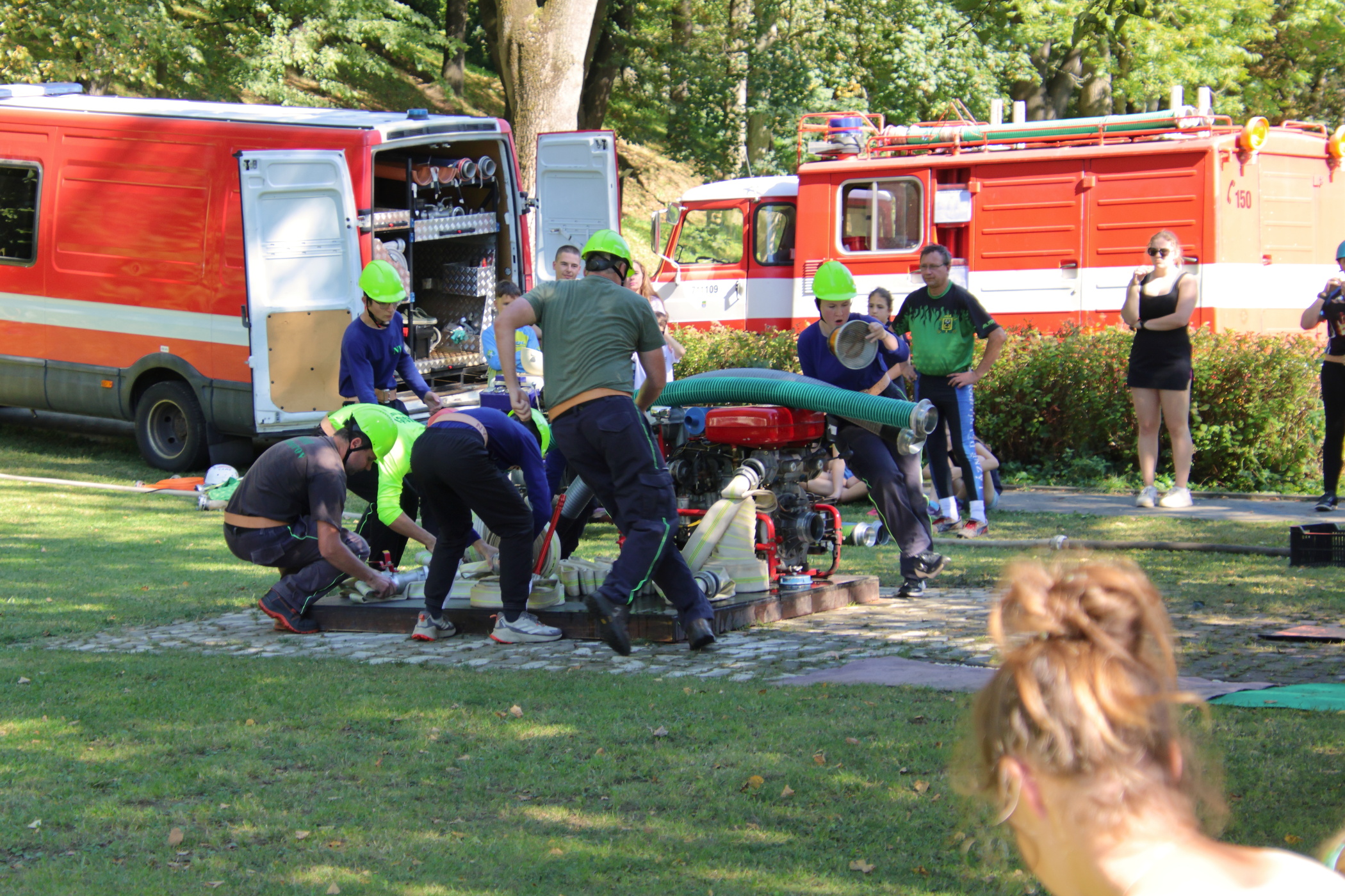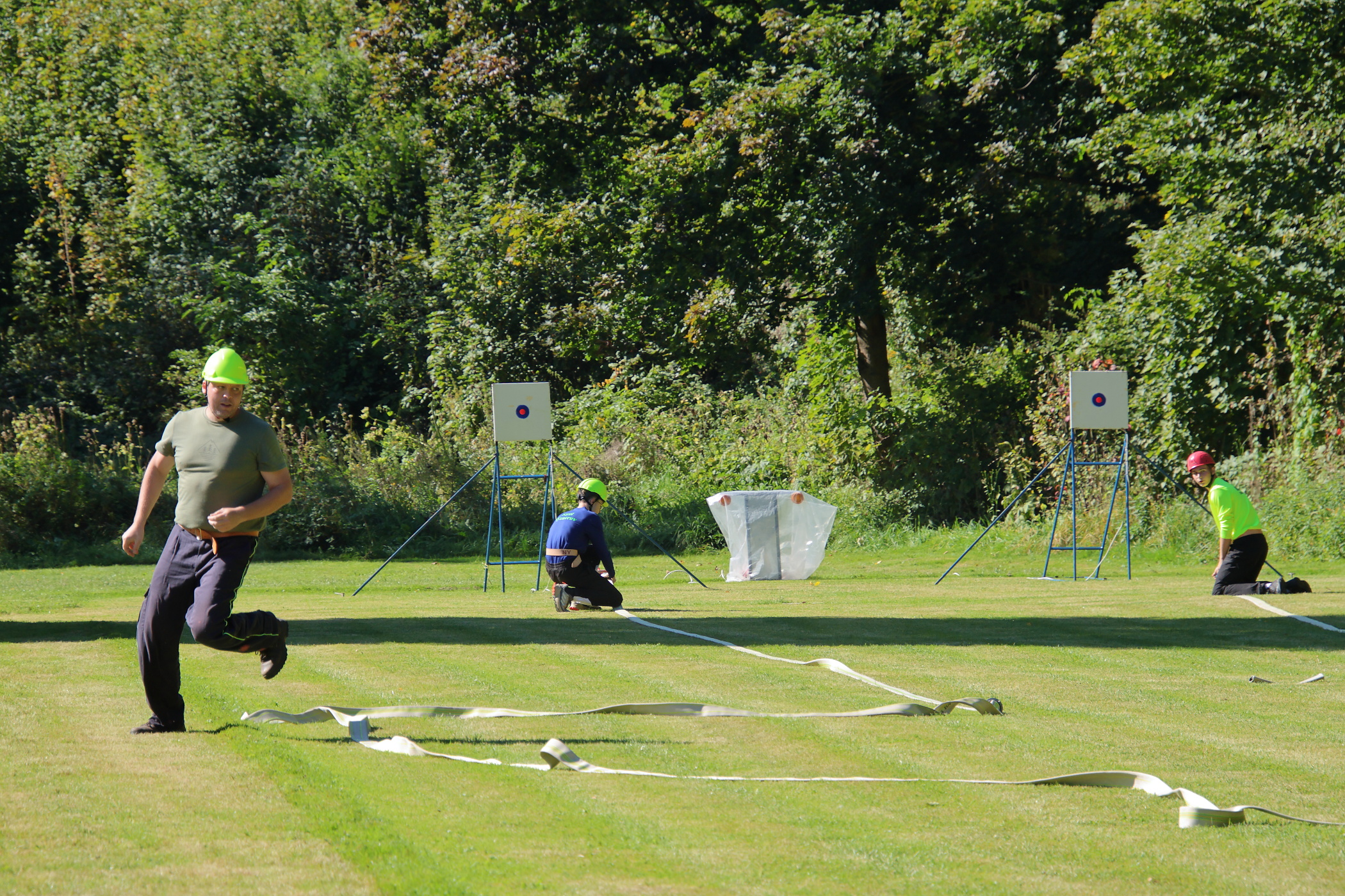 Pro většinu členů našeho družstva to byla jejich první soutěž za dospělé. Jeden z nich soutěžil poprvé. Nachystali jsme si základnu a poté jsme se připravili na start. Vzadu jsme měli stejné obsazení jako za mladé hasiče. Na pravém proudu běžel zapůjčený hasič z Černé Vody. Pokusy neproběhly úplně hladce, zvlášť u toho druhého došlo k odpojení hadice B od rozdělovače. Ta byla následně opět napojena a pokus jsme dokončili.