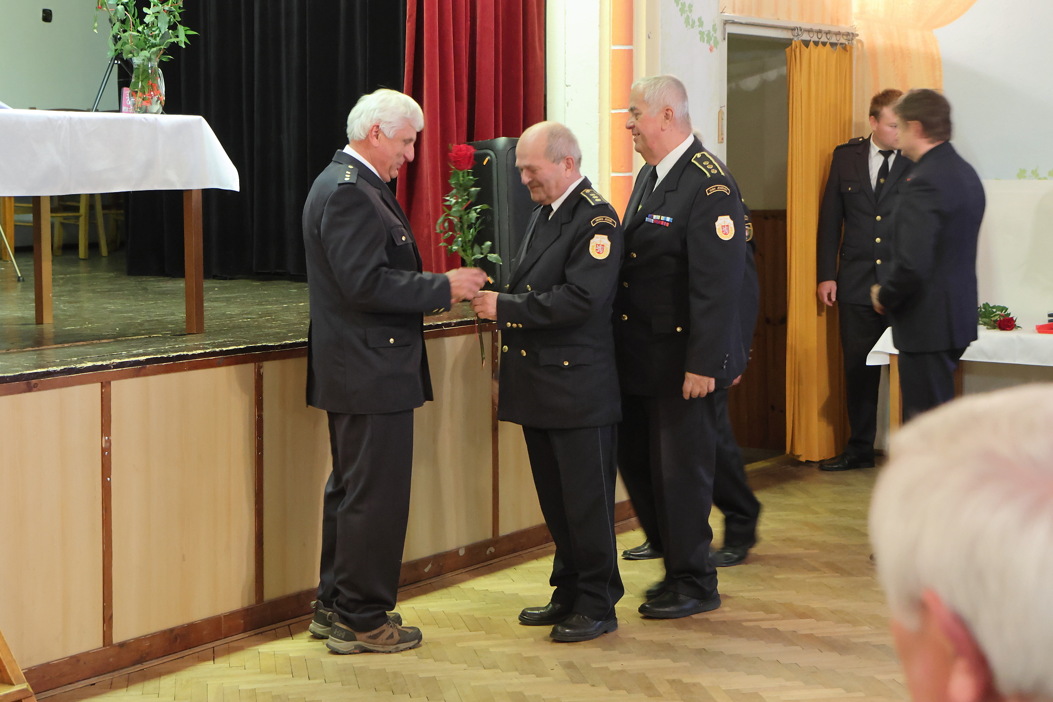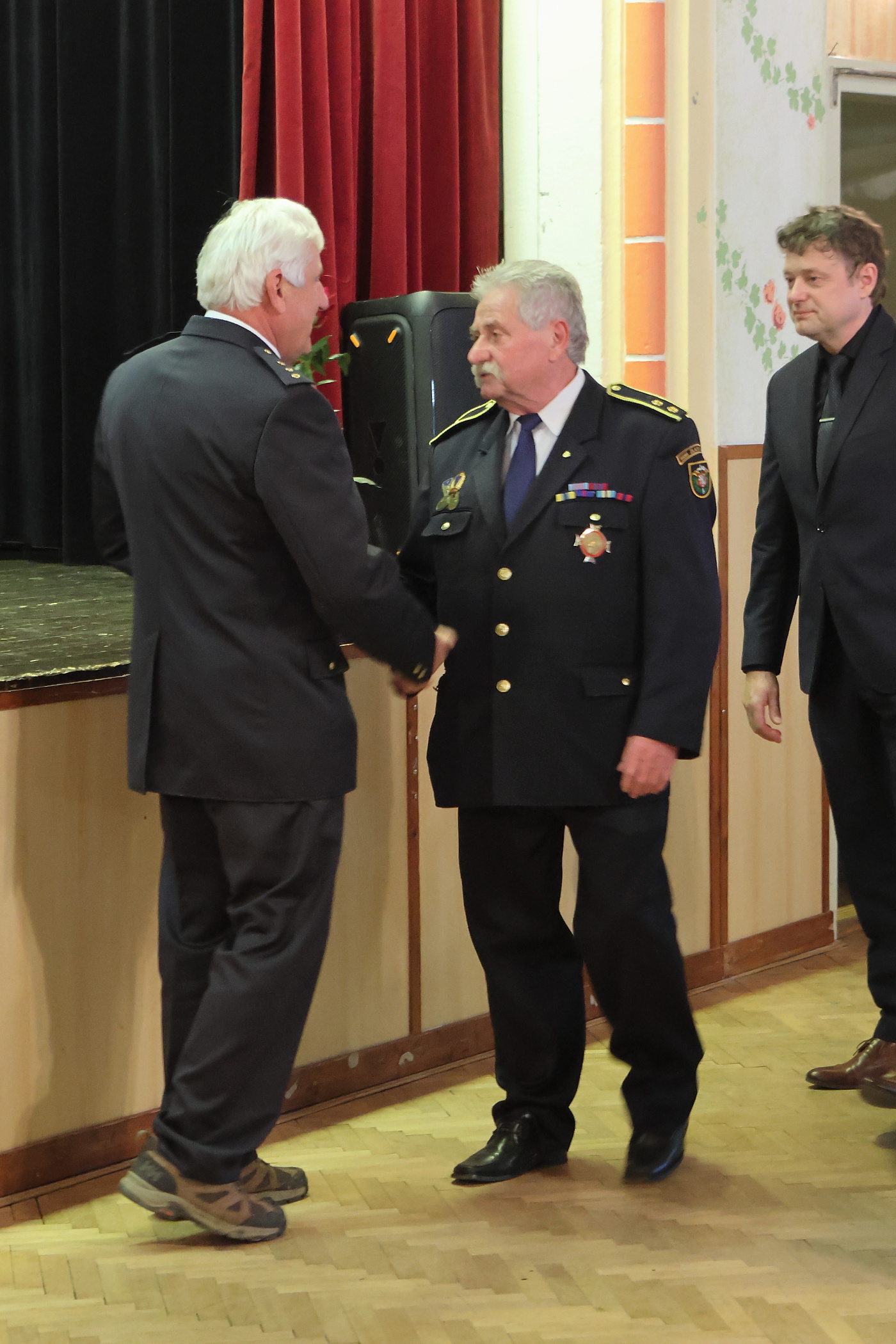 V sobotu proběhlo v Černé Vodě na sále kulturního domu letošní druhé předávání ocenění Zasloužilého hasiče okresu Jeseník. Oceněných bylo přes dvacet. Z našeho SDH byly schváleny nominace pro Josefa Hadwigera a Michala Nika mladšího, kteří se na místo se starostou sboru dostavili.