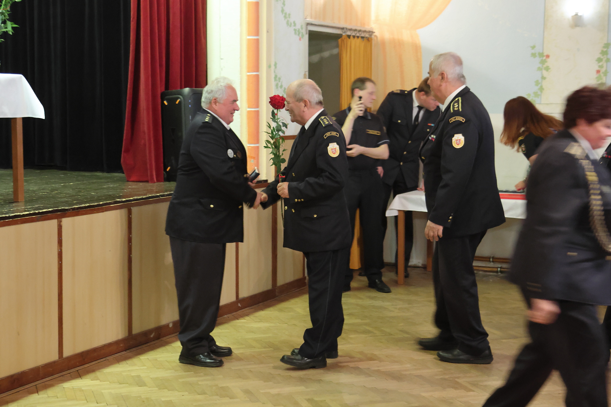 Po ceremoniálu následovalo posezení a občerstvení, kterého bylo připraveno dostatek. Hrála i živá hudba. Od pěti hodin se mohli dostavit i již dříve ocenění a republikový zasloužilí hasiči.
